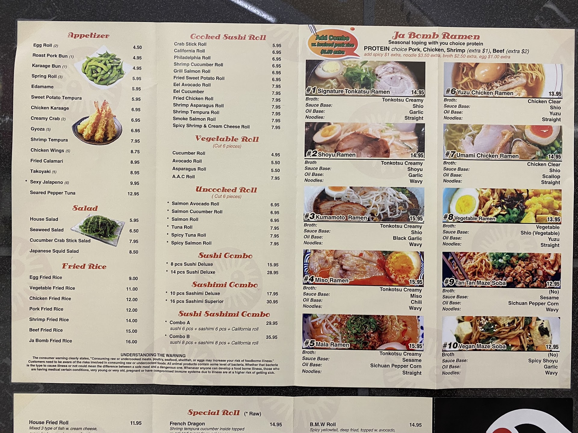 Ā Ā Ā Read moreHad the Shoyu Ramen with pork & the Yuzu chicken ramen with chicken and it was great. The Shoyu was favorited as it seemed a little bit more exotic. The bowls are huge, probably share between two people! Tons of food, good assortment of veggies. Extremely fast service (I'm talking order and it's there in less than 5-10 minutes. Instant service!) It might be a little pricey, but what does Bismarck have for fresh sushi and basically homemade ramen? Tried the crab stick roll (Cooked.) It was served cold and was pretty good! Not the favorite, was maybe a little bit dry. But, we're a family who's never had sushi before! Tried the veggie rolls, were great. little bit of a kick to them! Pork egg rolls were great too.