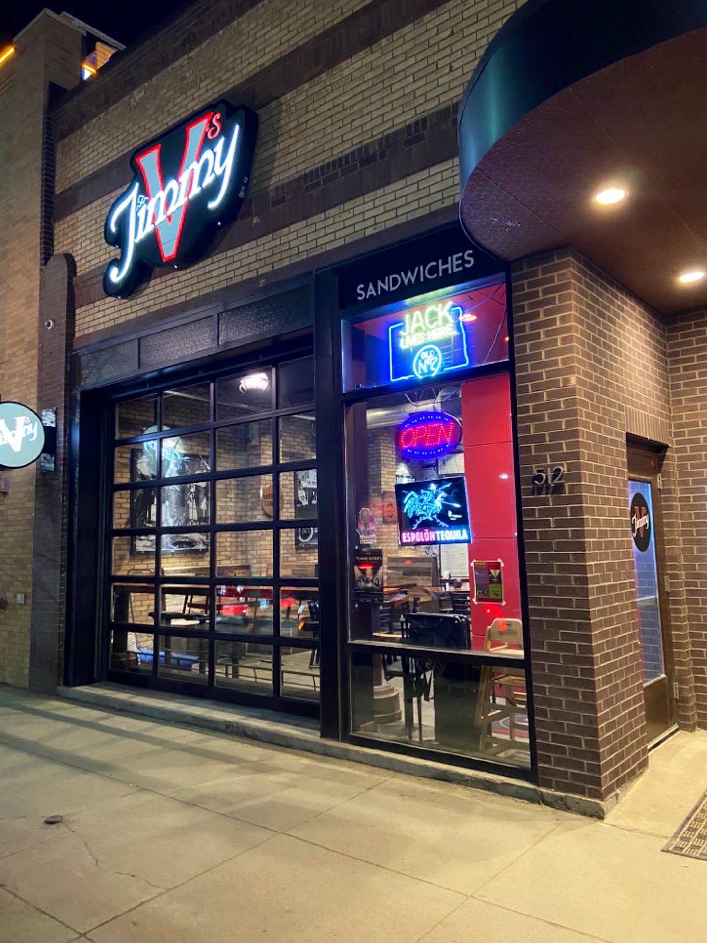Read moreWe love the original restaurant by Kohl's, steak sandwiches are the best and when they had their pizza slices and beer special, we would go often. When they had to move liqueur license to Jimmy V's were disappointed because going downtown is usually not an option. We had the opportunity to try Jimmy V's, nice day garage door was open, had music going, felt like a good atmosphere on first impression. Was told you could get any side with their steak sandwiches, orderes without peppers and onions and cheese curds, husband got a meatball sandwich with a choice of an included side, he got a salad. My sandwich arrived, had peppers and onions, had very little meat, original store meat is packed, my sandwich was tasteless. My husbands meatball sandwich was large, tasteless. Received our bill, we were charged extra for sides. Very disappointed! We will not return. We will stay with Nardellos, by far way better food, even though we cant get a beer. Would not recommend Jimmy V's! Save your money and then you dont have to listen to the F word on every song they play...