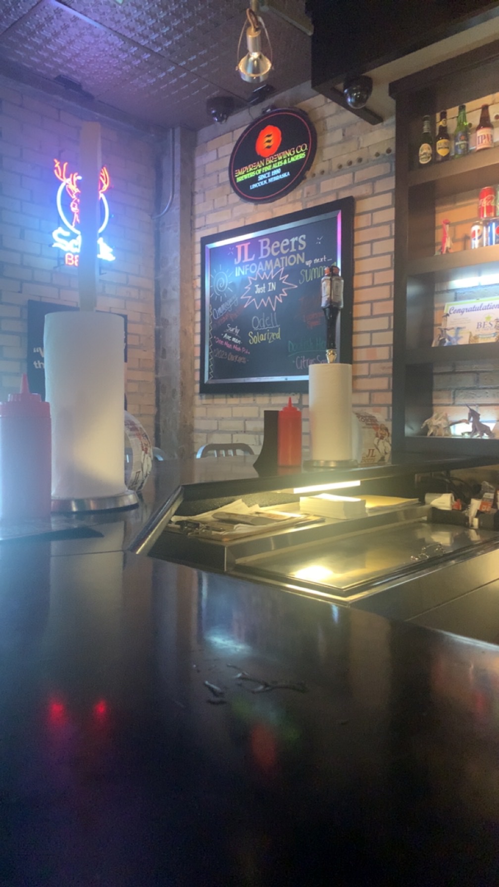 Read moreI've never been to a JL Beers that wasn't perfect in every way. Spotlessly clean. Great service. Great food prepared perfectly and in front of me faster than I can choose from 40 beers on tap. It's the same story no matter which JL Beers you visit. The veggie burger is good enough to add to a real burger as an accoutrement. The only misstep is not having real chicken breasts like they used to. For uniformity purposes they grind the never frozen chicken and form a uniformly thick chicken patty. It's good, but not as good as I recall the real breasts being. It could be nostalgia ... but they need not guess when a breast is fully cooked anymore, so I get the reason. The handmade chips are perfectly crisp and seasoned. The fresh cut fries are as well. Try a huge soft pretzel with the beer cheese sauce; it's a treat you won't forget. If a pretzel isn't dessert enough have a float made with root beer or any beer that hits your fancy. For a tiny footprint every JL Beers makes a...