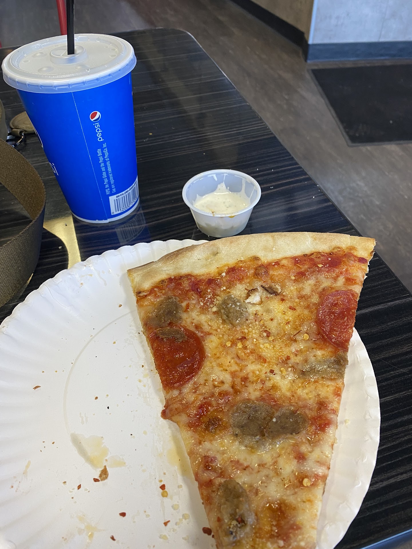 Read moreIt's exactly what a NY style is. Mine was extra cheesy and had just the right amount of sauce for most people (I prefer extra sauce but didn't ask for it.) Crust is thin but not floppy. I thought it was teasing on the edge of being too salty for my preference, probably from the cheese, but not enough to complain about. Sauce was decent. Overall, if a NY style is what you're after this is a good place to try it