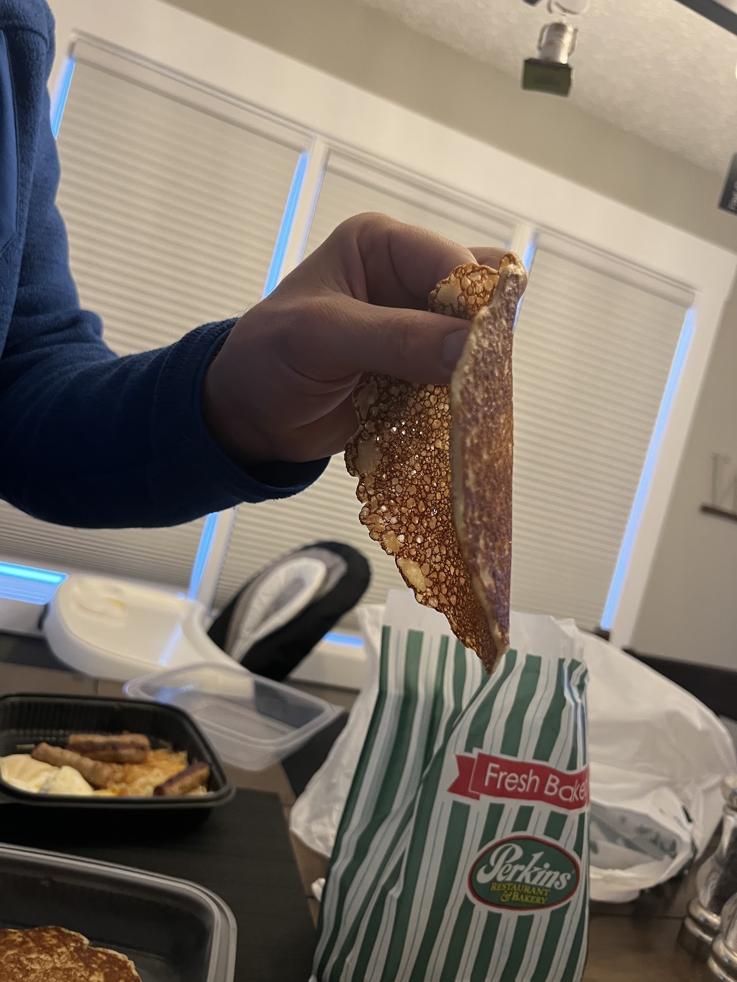 Our food was subpar, especially considering the wait time. Pancakes that were so overcooked I needed a steak knife to cut them. Pancakes were also lukewarm. The omelette was reasonably warm but lacked flavor. My wife's chicken biscuits and gravy was also lukewarm in the middle, as though it had been microwaved. The hash browns on both of our plates however, was fresh and steaming hot.