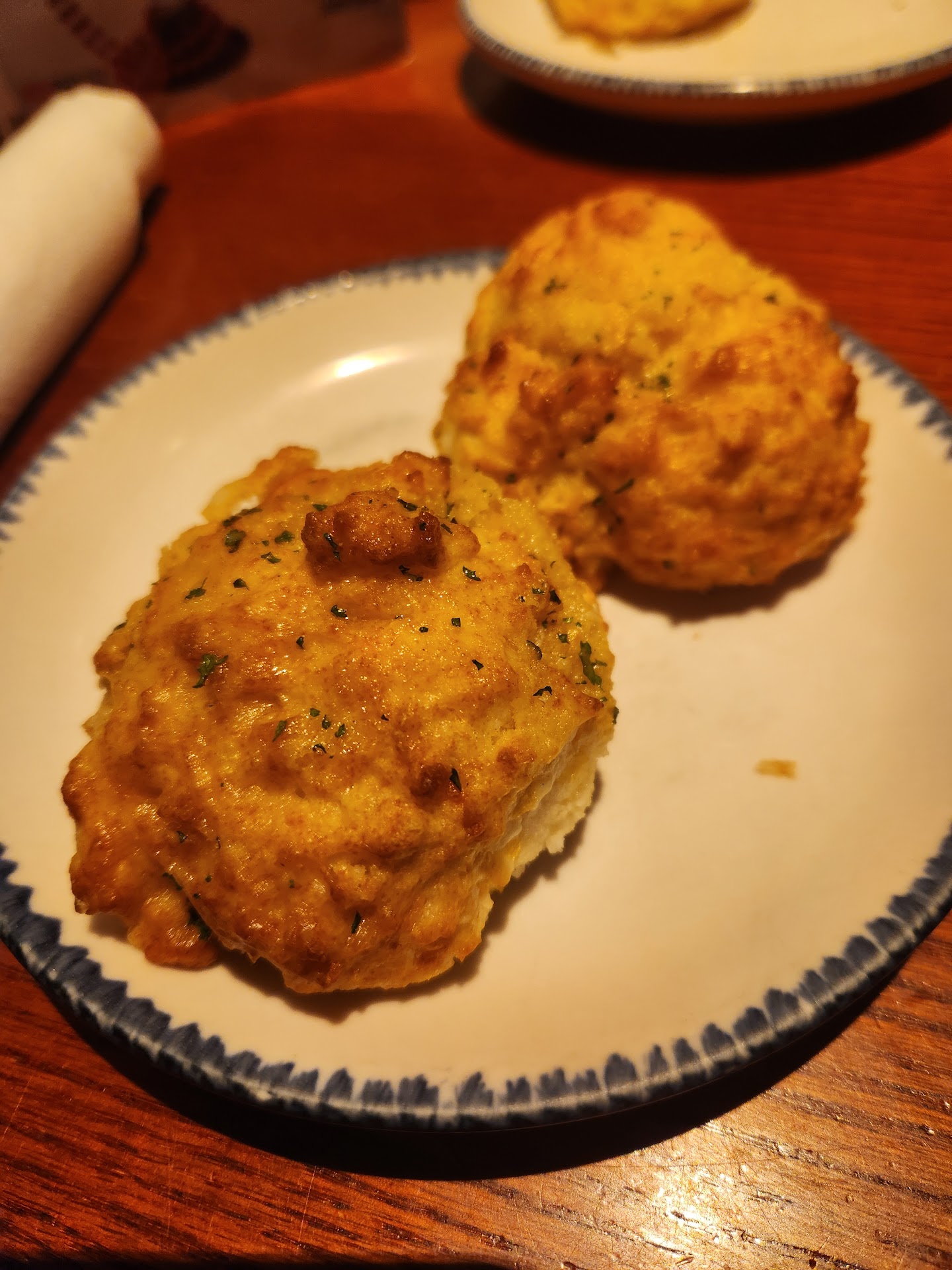 This time I ordered The Mariner's Feast with Calamari rings for appetizers. The first thing that arrived was a Mt. Dew which was warm and flat. Then, after what seemed like a short amount of time, considering they were moderately busy, my main meal arrived. Yep, that's right, the appetizers didn't come, again. This almost seems like a feature of the service since it happens about half of the time to myself and the others I have come here with in the past. Now, to the main meal. The salmon was overcooked and rubbery. The rice it sat on was undercooked, as in, the rice grains were crunchy in the middle. The scallops were not grilled well and were slightly undercooked(slimy in the middle). Scallops can be a challenge, I admit. However, Walt's shrimp were an easily avoidable embarrassment. They were undercooked, limp, and the breading was not golden brown but just barely starting to become crispy when they were removed from the oil. This predictable result led to the breading being saturated with oil and the shrimp not fully hot in the middle. The appetizers arrived when I was well into suffering through the main meal. Good calamari is hard to come by in the U.S. so I don't expect it to be great at a chain restaurant but I've had a passable serving of it once in a while at this location. It was slightly rubbery which means it was overcooked. The breading was done well but it's not a good choice of breading for something delicate like calamari rings because it's thick and takes too long to deep fry which will lead to overcooked and rubbery meat. This is not the fault of this location but of the chain itself for poor choice. They were still edible and better than the main meal. Lastly, I would like to say that the biscuits were perfect and are always done well.