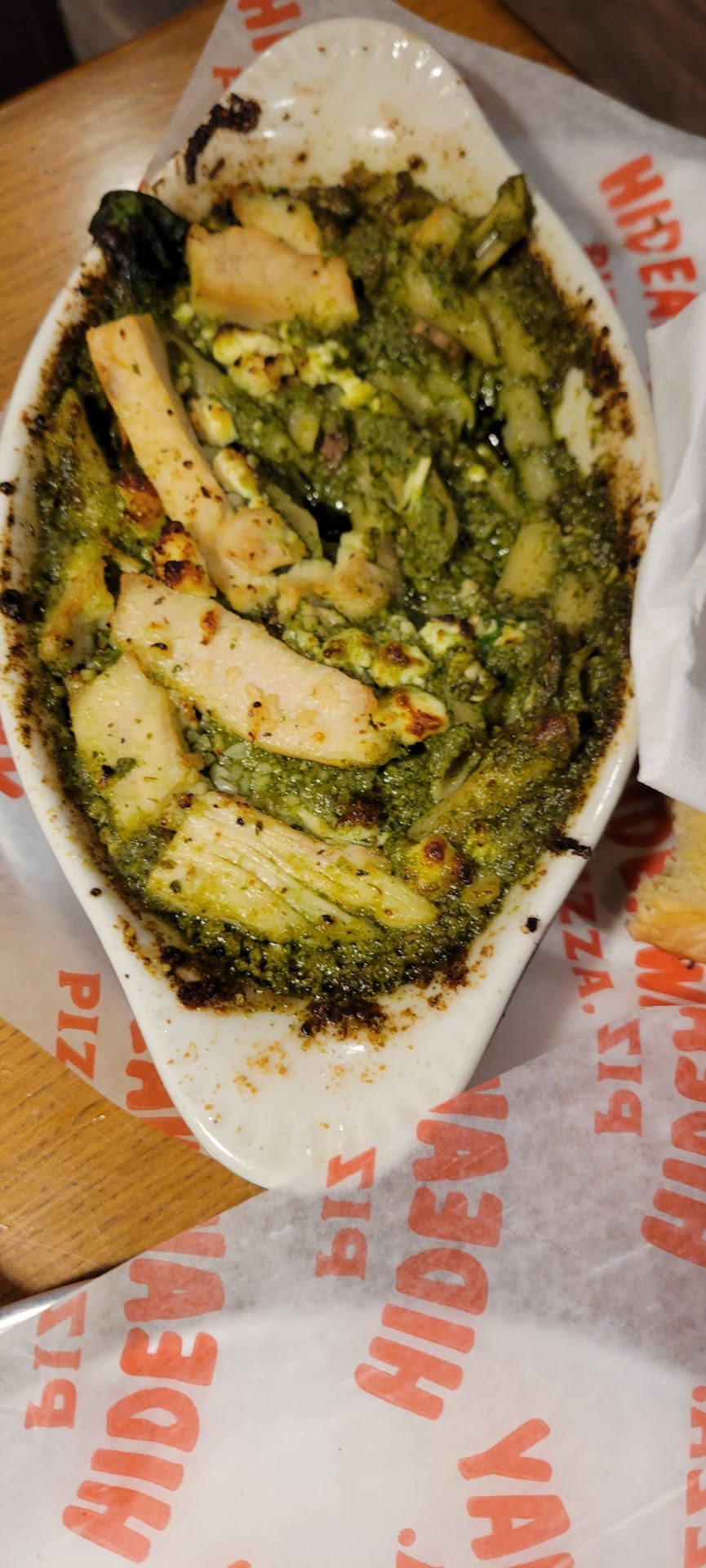 We got 2 hand tossed pizzas, one was a normal pepperoni pizza with the red sauce and the other was a pepperoni and pineapple with the olive oil + garlic sauce. Both pizzas were really good. I have no complaints other than both pizzas didn’t fit on our table (they were big pizzas!). I would order both of these again, no problem.