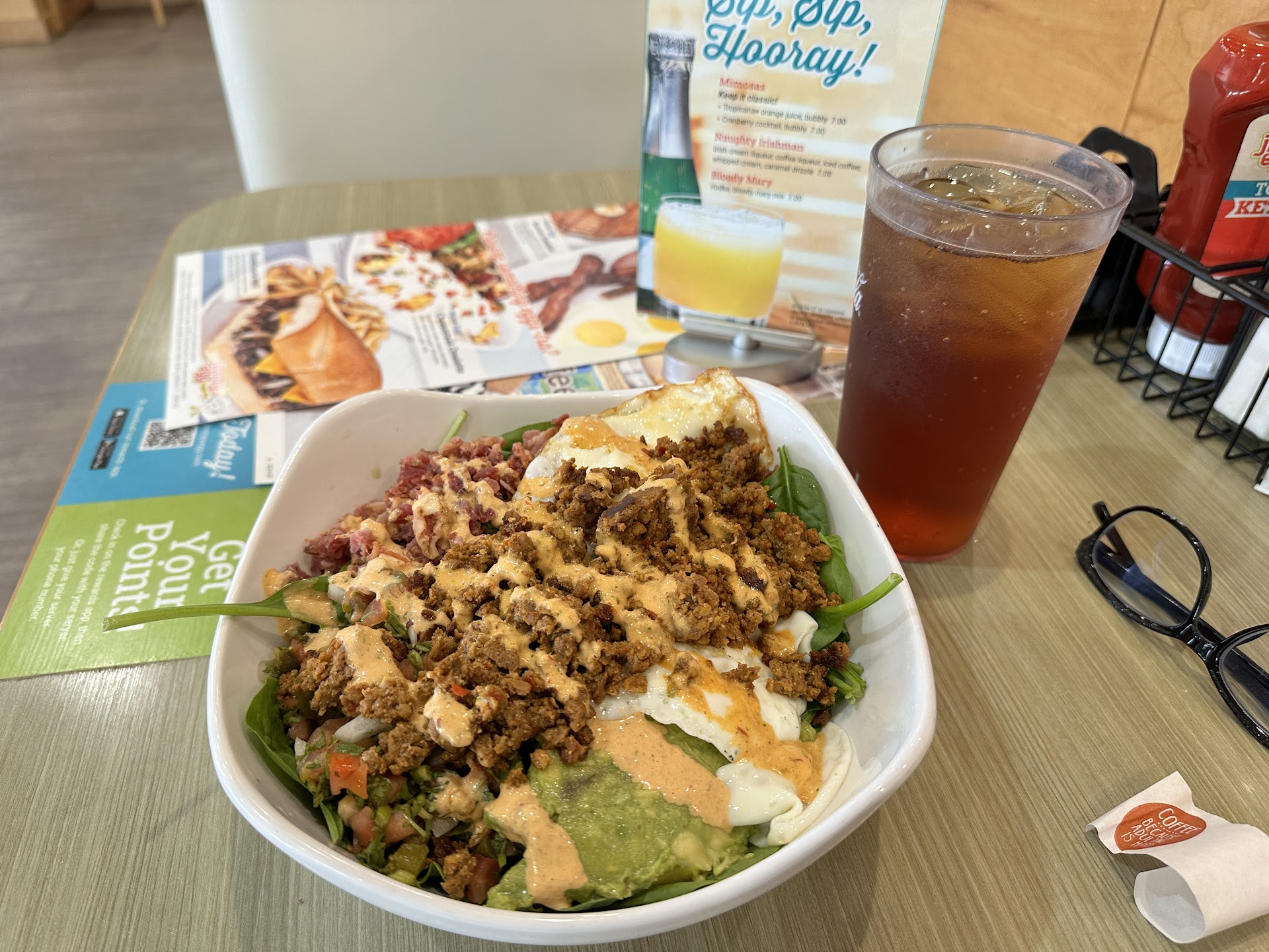 if there was a - star i would give it for this place , i was so excited to have a new breakfast place to go to in Bixby but i was disappointed right on my first visit, i t was a Wednesday, brought my coworkers to come eat breakfast and Jimmy's in Bixby, jimmy's eggs stands for a breakfast icon, i have so much negatives and don't know where to start, we were seated right away, which explains why they have 13 girls on the floor, it wasn't busy at all, took 5 minutes to get our drinks, another 10 to order and 15 to get the food (not all of it) everyone get to start eating while i was still waiting for my egg benedicts which arrived 15 minutes after everyone else's , food was undercooked, hashbrowns was probably microwaved (still white like never touched the grill) , eggs supposed to be over medium well came out over light , runny and gross, one of the plates had crispy bacon came out limp, we had to keep asking for refills on coffee while they had 2 other tables, waitress was so busy talking to her friends instead of waiting on us, got the check 68 dollars for a sub par food for 5 people ! Are you kidding me??? I was like maybe because this was their first week and they are still training their staff, webt again tuesday , 3 of us because the other 2 said oh hell no thats it for us we are not going back, wish we have listened to them , went in, place was dead with only 4 tables in, waited 15 minutes for our precious waitress to finally come to our tables , at that point we were like oh Thanks but no thanks thats it for us , got up and left!! I never experienced such a bad eating place anywhere , I give this place 6 months to 1 year tops!! Thats if they last that long !! They brought us little vouchers to fill up and put it in the box to win free breakfast for a year, now if they offer us free breakfast for life we still won't be...