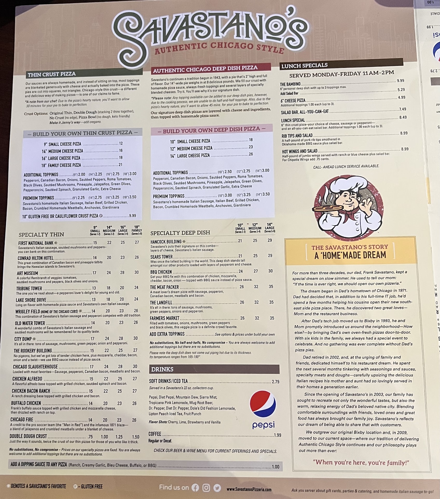This restaurant was in the struggle that day! We were visiting Tulsa and we love a good pizza spot this place looked promising. Everything started out great, we had a small wait for them to clean off a table because we were with a group of 8 women. Once we were seated a very nice server came over and introduced himself and we e planned this was our first time in and would need a little extra time to look the menu over because it’s a big menu. We got the time we needed to order and after that is when everything went downhill. So we waited, other customers were starting to coming in to dine which was awesome because we were thinking this must be a great place. After a longer than normal wait for pizza and us noticing that customers that were seated after us near our table started to get their pizzas first we were starting to wonder what may be going on. A few people ordered salads and they hadn’t got their salads either. So when the 3rd group of people who came after us got their food and we still were waiting I called for the waiter. We asked were the salads were and he was dumbfounded that we had not received our salads yet and not sure what was happening. He brought out the appetizers, they were good! Then he left to handle the salads, then the manager just happened to be close to our table and I asked about our pizza and explained that we had been waiting a while and the customers that came in after us were getting their pizzas. The manager stated, “oh when you order a lot pizzas it can take longer” , I stated we ordered two pizzas. She was confused so she went to go find out we’re out pizza was. The manager came back out 20 minutes later with pizzas. Sadly our deep dish pizza was barely warm( so our pizza obviously had been sitting) and the other pizza crust was literally burned not to a crisp but clearly over cooked. I called the manager back over and explained that the deep dish was not even hot and she explained that it’s hard to get a deep dish pizza hot because of all the layers on the pizza, which made zero sense because if you can’t serve hot pizza then don’t serve pizza! She offered to remake the pizza we were on a time crunch to get back on the highway to head home, so I asked if she could run it back through the oven she agreed but she had to remake the other pizza because it was burnt and she recognized that. We arrived at the restaurant at 1:49pm at 3:13pm is when they started the process of remaking the burnt pizza and rewarming the deep dish pizza . Needless to say the deep dish pizza came back hot white nice stringy pulled cheese when I got a piece but honestly by this time everyone was over it and ready to go. The serve came over and apologized and then the manager stated she would be glad to discount the food for our trouble. Oh I didn’t even mention I ordered a kids chicken Alfredo for my daughter and I literally had to ask for more Alfredo sauce because her noodles came out with a dab of sauce and a bunch of dry noodles🙄. The server left to bring back our tickets and the manager also brought out the pizza that was remade. When I received my ticket there was not discount on the ticket so then I had to bring that to the server and manager’s attention they took the ticket and took off $10. With the discount I still had a $79.54 ticket which the experience was not worth $79.54, I was not expecting a free meal but I thought with all fairness with the time we waited the mistakes made she could’ve at the least discounted the ticket $25 but I didn’t complain I was over it I paid my $79.54 and tipped cash and left. THAT WAS MY FIRST AND LAST VISIT TO SAVASTANO’S…… I will give them credit that the deep dish pizza had a good flavor but that is not enough to bring me to...