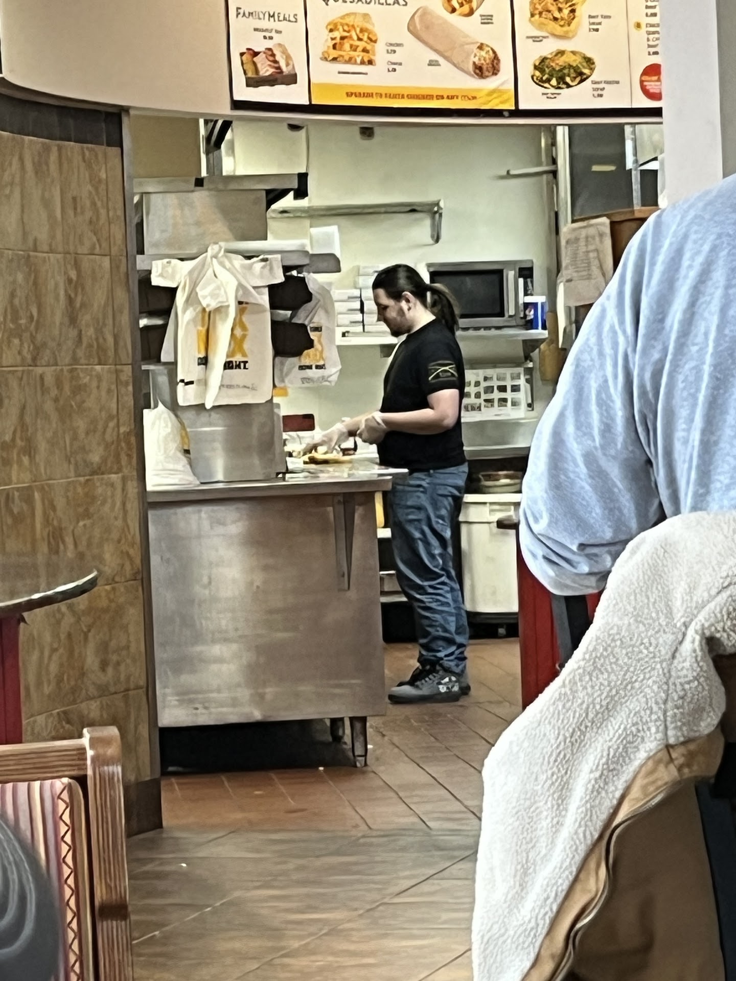 Well where do I begin? Does taco have any health standards left? As far as the health department standards? Employees with long hair and bear are required by the state to wear a net Here’s the specific regulation for Oklahoma state regarding hair and beard standards in food establishments: