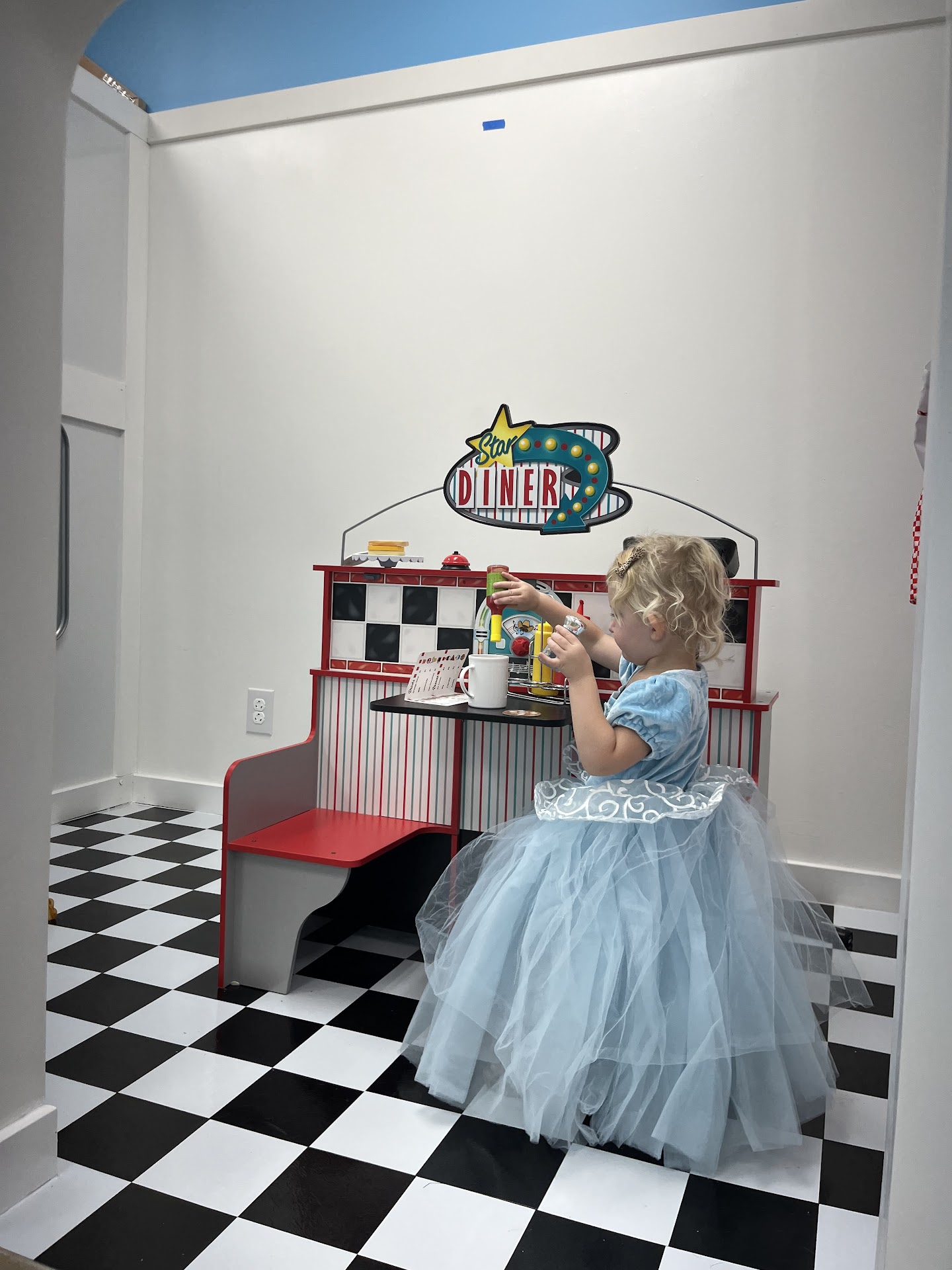 Negatives abound: Firstly, the prices are hideous. My husband, myself, and our two yr old paid $67 for a microwaved lunch that left us hungry (Went to Nola’s for a nice family meal later in the week and literally spent half as much). 3 small items to eat, 2 coffees that weren’t mixed up at all and COULDN’T be blended, and a juice box for nearly $70?! My avocado toast bagel was good (better be at just under $8). It came out first so my daughter thankfully played while I ate, but my husband watched me. Finally her tiny pizza came out, microwaved, sad and floppy. We both ate and my husband’s cheese fries still hadn’t arrived. We were READY to leave and just ask for his food to be refunded as it finally shows up.