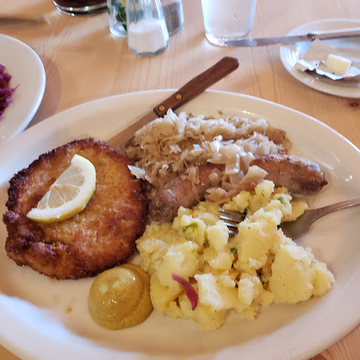 DID NOT MATCH REVIEWS - WON'T BE BACK My wife and I sought out this restaurant when planning our trip to attend a concert at the Tacoma Dome. We are both fans of German food and we're very hopeful based on the Google ratings. We walked in at about 2:30 on a Tuesday afternoon and the place was empty. No one at the front and no customers in the restaurant. After a minute or two a woman shows up from somewhere in the back and asks if we are dining in or picking up. We sit down to eat and we receive menus. The woman is pleasant and friendly. At this point German music from Oktoberfest starts playing in the background, kind of nice and not intrusive. We each order a dinner entree and my wife has water and I have a decent pilsner. While waiting for our late lunch early dinner I roam the place a bit. The place is immaculatly decorated in the German hunting lodge style. It was a very pleasant environment. We ordered German potato pancakes with apple sauce and sour cream as an appetizer. The pancakes were of good size. The pancake had been over fried because the edges were brittle and difficult to cut with a fork. They also retained so much grease from frying that they were almost inedible. Our dinner arrives and it definitely does not look or taste fresh. My spaetzle is fine but the gravy has no wine in it. The rolled Jaeger schnitzel stuffed with cheese and mushroom was partially cold which I am sure reduced the flavor. The red cabbage was great. My wife also had the German potato salad which was fine. Her schnitzel was okay. We ordered dessert because my wife was excited to find real German chocolate cake and I love apple strudel. The cake arrives and it is a small piece that is obviously from a box. The frosting has no coconut and it is not recognizable as what she ordered. The apple strudel I ordered looked to be made from Pillsbury pastry dough and commercial apple pie filling, no nuts, raisins, or spices. The waitress said the owner's daughter made it in house. We pay our bill of almost $100 and exit. You may ask, "Why didn't you complain?" My wife and I get no pleasure from forcing professionals to do it right. We vote with our dollars and will not be back. Very...