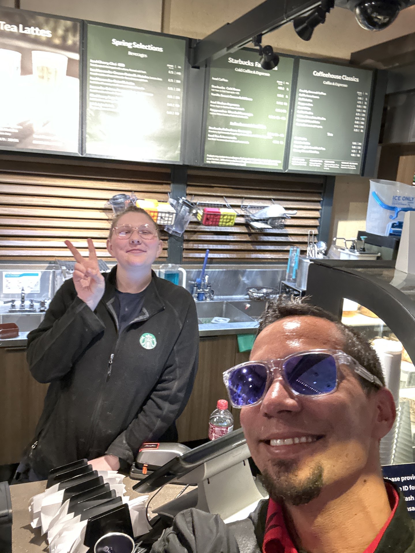 The male associate (or manager) working here was super nice and helpful however the other associate seemed like they were afraid to even acknowledge a customer. My drink was made wrong and when I let then know, the quiet associate who made it didn’t even look up to acknowledge it, they then proceeded to slow motion pour it out as if we kind of ruined her day or were mean. The other manager or associate jumped in and helped (very friendly) remade my drink but still gave me a drink that looked extremely incorrect. I have never had a white “caramel frappe” with no caramel. I would post a pic if I could just to prove I’m not crazy. I thought it was a white mocha frappe. This location needs more training support so all associates know the recipes and feel extra confident even when mistakes are made. Again, no one was unfriendly however the drink...