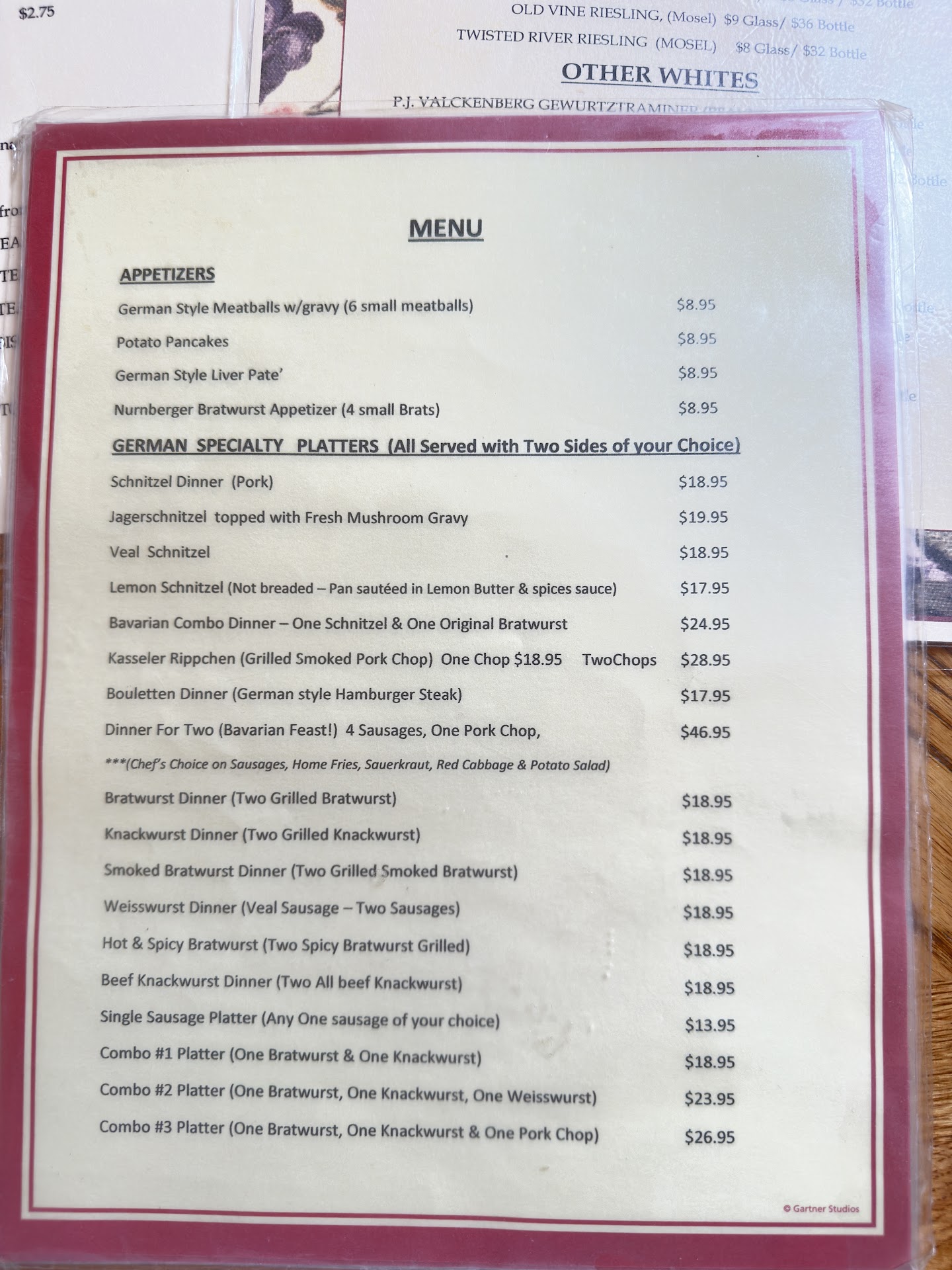 Read more1st time here. 5pm. Friday, August 29th, 2025. They just opened for the night, so everything should have been hot and fresh. Ordered special for two. Everything on the platter was cold except for the pork chop. It was freshly grilled and good. No complementary bread nor salad was offered. Iced tea was hot with hardly any ice in it. Waitress not attentive. The kraut and red kraut was from a can per staff and bland. The sausages were pre-cooked and warmed up but not enough, mostly cold. No grill marks. No flavor to them. The bland fried potatoes were cold and at two spoonfuls, it was not enough for two people. The potato salad was cool but not cold and severely lacking in flavor. Not an authentic German restaurant with severe lack of quality to the food. At over 60.00 for two people, it was a waste of pur time and money. We will...