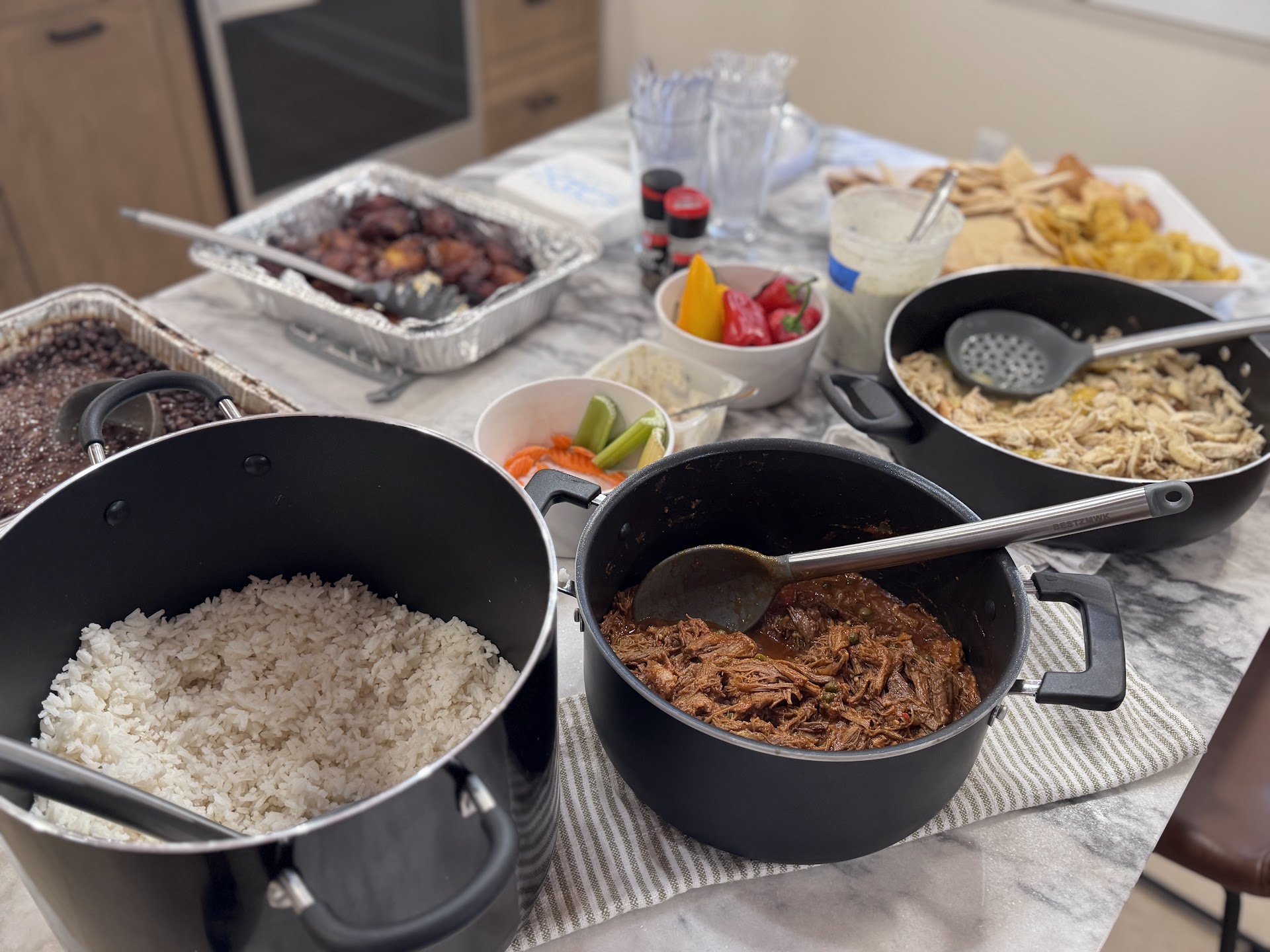 The ambiance is very loud and small. You have to order at the counter and there is a huge line in the middle of the Resturant and really close to the inside seating very claustrophobic. We ordered 2 palmeritas, vegan lechón asado bowl made out of jackfruit, and vegan ropa vieja bowl jackfruit. Our drinks were jupina and iron beer typical Hispanic drinks. The palmeritas were $1.25 each from a bag and an inch size not worth it! Too expensive for the food quality they serve.Also, the vegan lechón asado was extremely vinegary as if it had too much mojo on the other hand the roja vieja had a great taste to it. The black beans are Goya can beans. The white rice was hard not fully cooked. My husband told the owner and she didn’t even try to make it right. She stated that she was Cuban and my husband told her we lived in Miami for over 35 years. I’m addition, he’s puertorican and in any culture you have to cook rice throughly. So we are never coming back to...