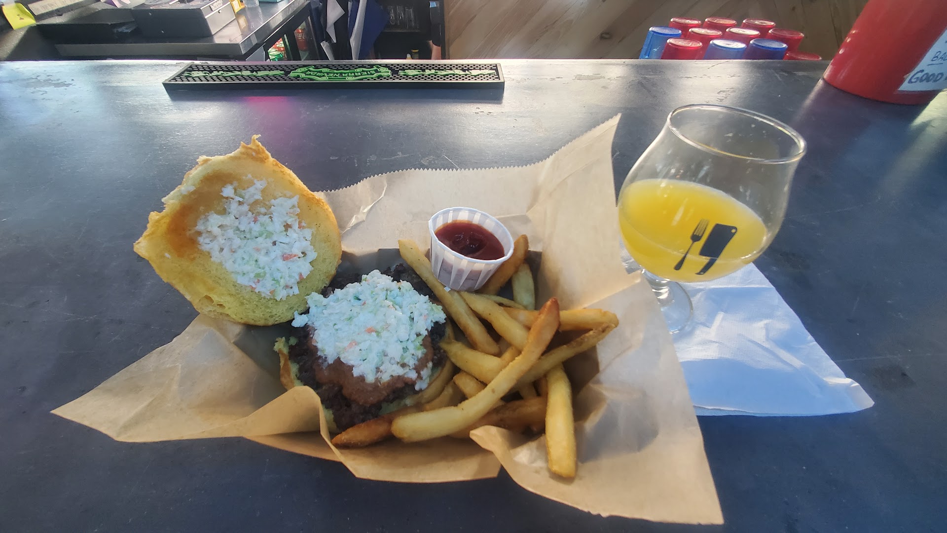 Love the space! Love the area for the kids particularly! Food was pretty good too! Service was slow which we didn’t even mind because our kids loved the play area and we had a beer and chatted. Somehow a burger got missed on our order (my husband or them- who knows 🤷🏼♀️) no big deal- kind of weird getting it fixed because of the ordering system- still no big deal. Guy in the food truck said he’d have it right up and my uncle went to pay. A little unfortunate because the long line he had to wait in to pay for the missed burger took a long time and his food was well cold by the time he got back. A little disappointed but still- not a ruined experience. Until someone(I have no idea her position) came to our table and rudely tried to explain what happened. Her attitude was honestly shocking. Between bites of his cold food my uncle advised her it was done and no need to explain. She snapped “do you want to hear what happened or not?” And when he said no she balled up the receipt and, I wish I was joking, stomped off and tossed it in the trash.