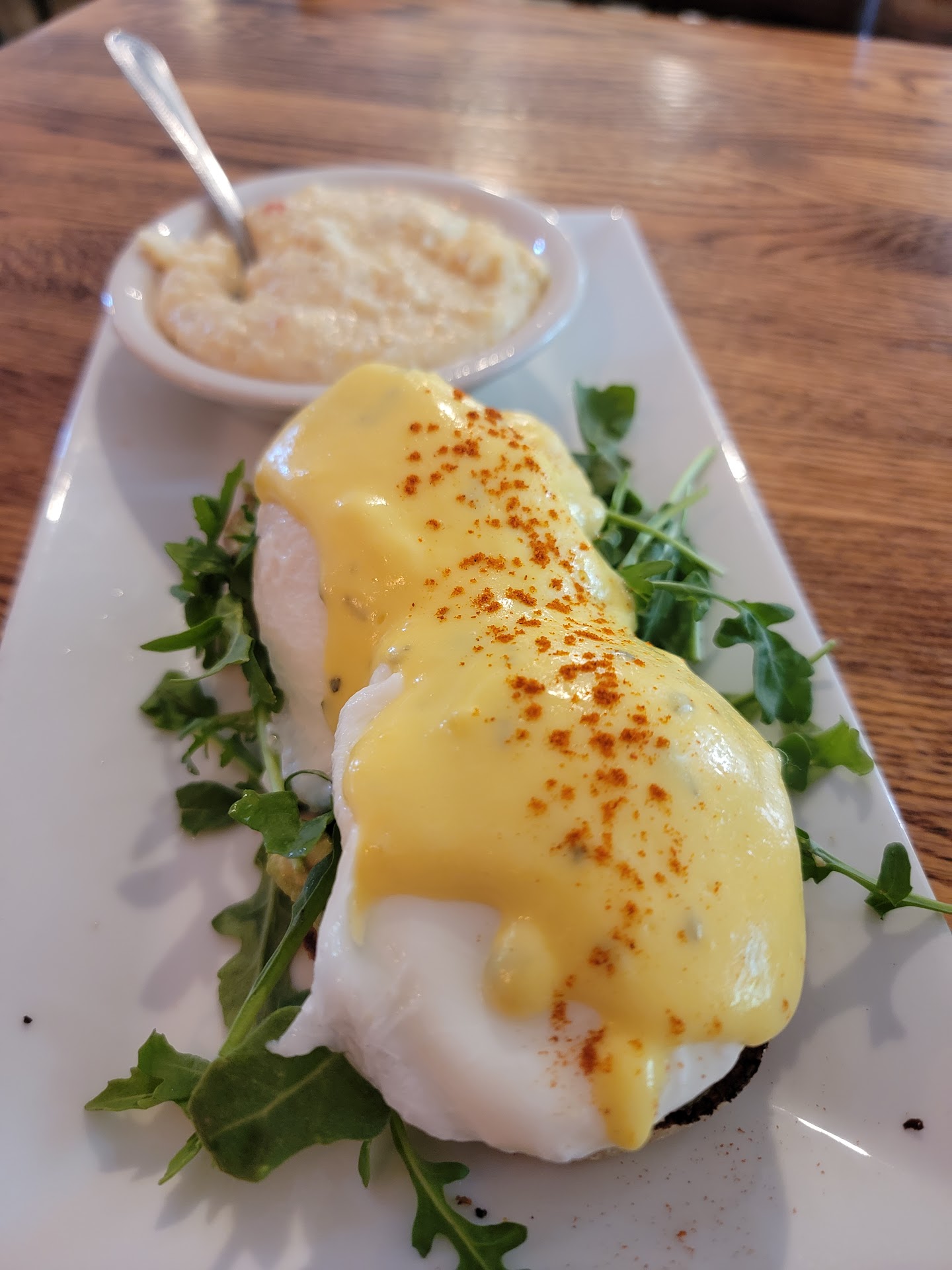 Finally, I order the same thing every time - a sunny day with two eggs and a side of arugula. Today it came on a small rectangular plate. I commented that the plate was different⦠and the server mentioned theyāre doing these small rectangular plates now. She assured me it was the same portion but it was literally 7 pieces of arugula whereas usually itās a heaping side.