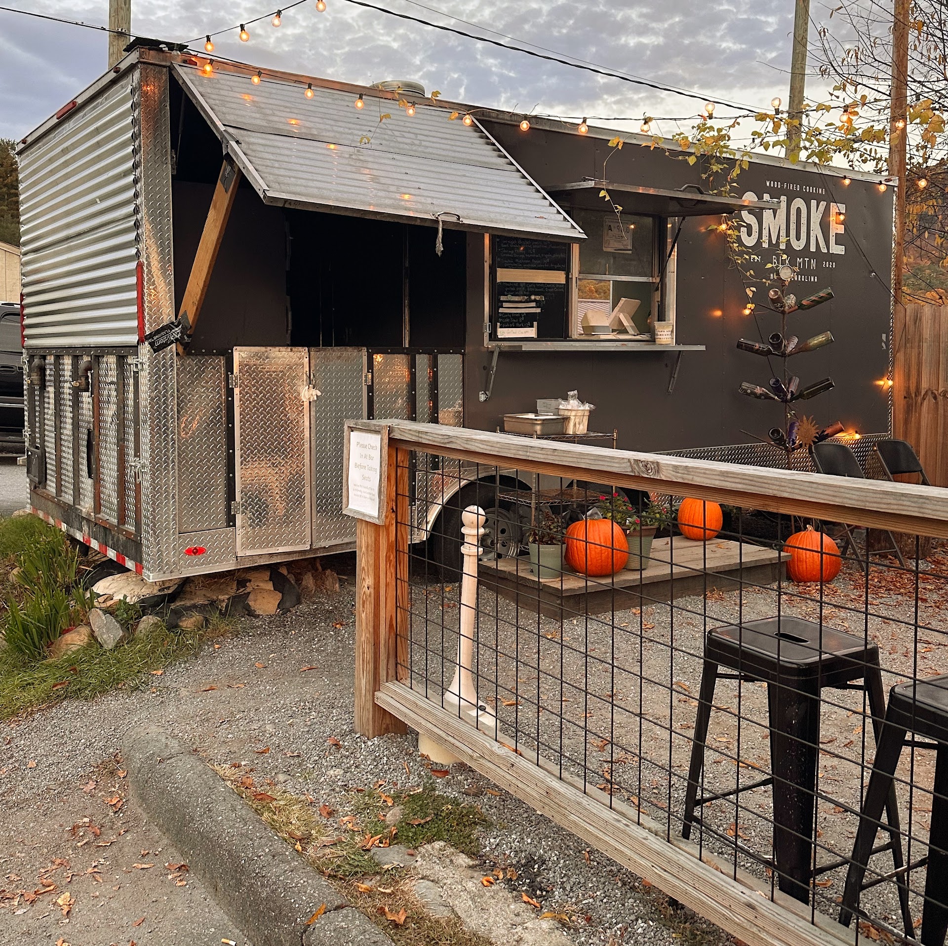 Smoke is a food truck behind a brewery. They have a unique concept serving smoked foods, smoked right there in the truck. The menu is limited which is ok, but has some unique (again) items. They open at 4:00 p.m. and the daily menu is not available until then. You can order at the window or online. Another plus is that they do serve dinner! So many good restaurants in Black Mountain are only open for lunch or breakfast and lunch. We like to eat out for dinner.