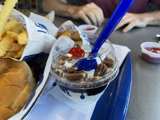 Ordered a kids meal because not that hungry and it was only 7.99 vs 12.00+ for a value basket depending on the supersized price of everything. Portions have shrunk so bad, value is gone. One dip is now over $3 fat content is bare minimum for custard standards, lack of add in ingredients was terrible. Flavor of the day was Chocolate Caramel Swirl. So no caramel at all like the picture on the board at the register, it was supposed to have chocolate sprinkles or bits? None found and basic swirl of chocolate and vanilla custard that was no better than Dairy queen or Toms. Very disappointed with my cheeseburger. Very messy and so much mustard even after I scraped a lot off was difficult to enjoy. The broccoli was good, but there is an upcharge for swapping out the fries. Really, for a kids portion you feel the need to upcharge for a healthy choice? And one more thing, this is the reason why I probably will never go back! My receipt showed senior discount 5% on the order, but I got a penny. Last time I did the math, 5% of 7.99 is way more than a penny! I did takeout so I was pretty far down the road by the time I saw this little mistake! Tried to comment on their survey, only to have their website kick me out twice and nit save any of my feedback. So you are getting it here on Google publicly instead. Have a better training for the young...
