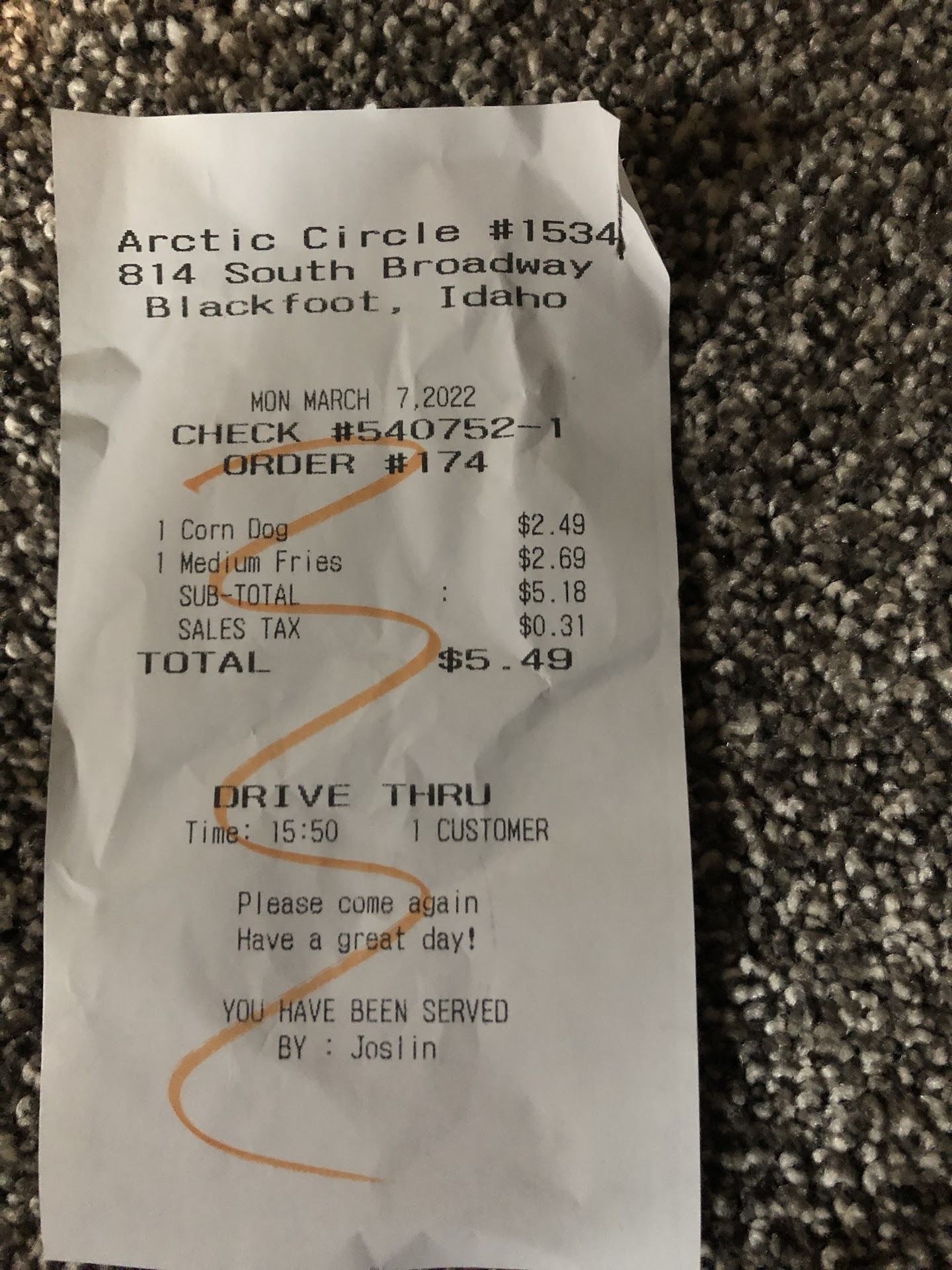 Read moreI went in to get dinner for my two children. When the clerk ran my card I was told it was declined. She and the store manager then ran the card two more times, each times saying that the card was declined each time. After checking my account on my phone I found out that my card had been charged each time and subsequently put into overdraft. When I went in to ask about this, I was ridley told that this happens all the time and that it would get fixed in a day or two. If it happens all the time why did they continue to run my card after the first time, when I could have gone somewhere else to get food. Was the sale that important? Instead now my balance is in the whole and my money is in limbo until they figure it out. Instead of at least comping the meal, ($15.00), the manager, (Stacy), was rude. Sure I have food at home for my kids, but I promised them Artic circle, or Mcdonalds........... THAT'S A MISTAKE I...