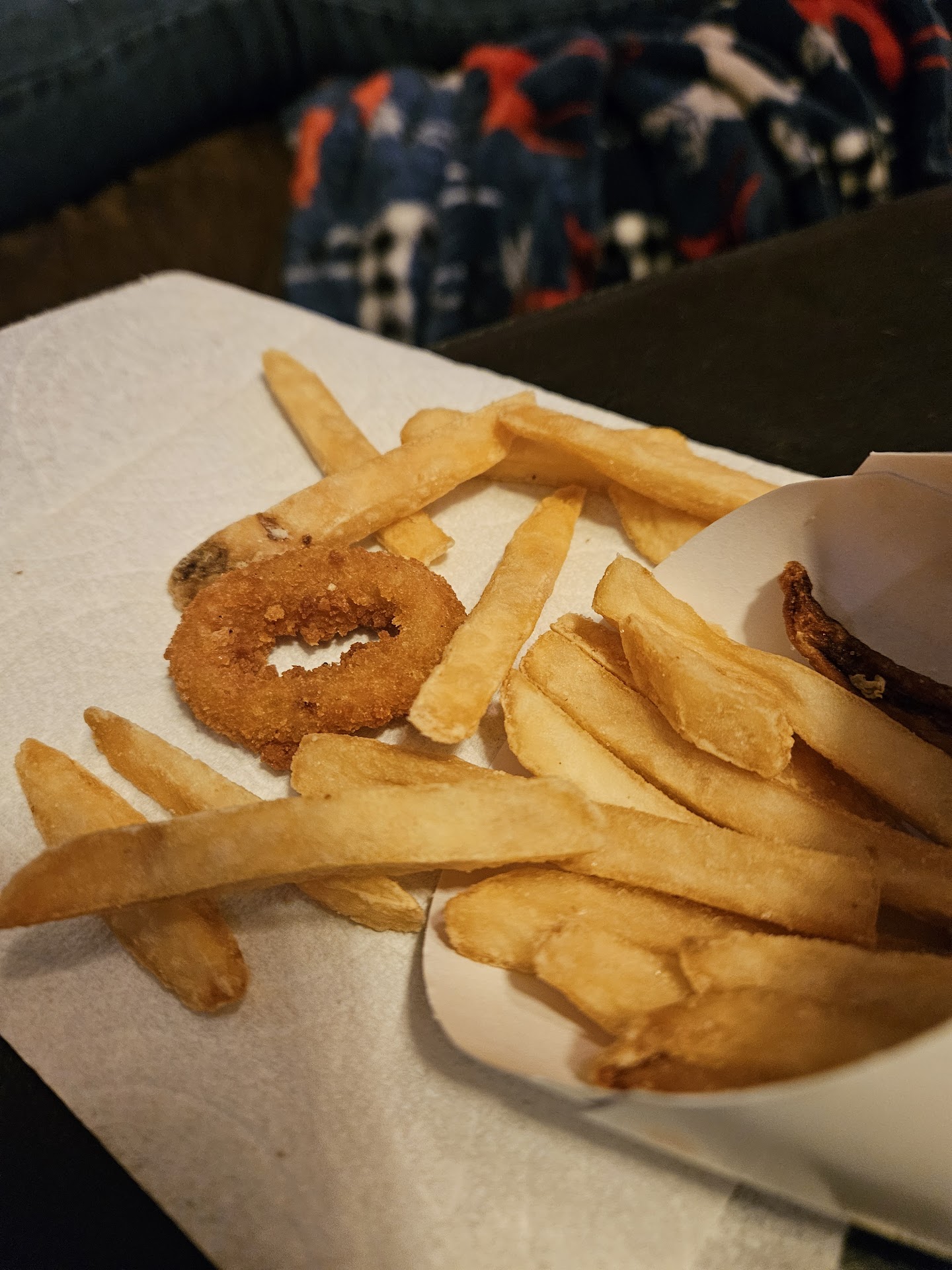 Our fries and onion rings were also clearly small containers and not even full.