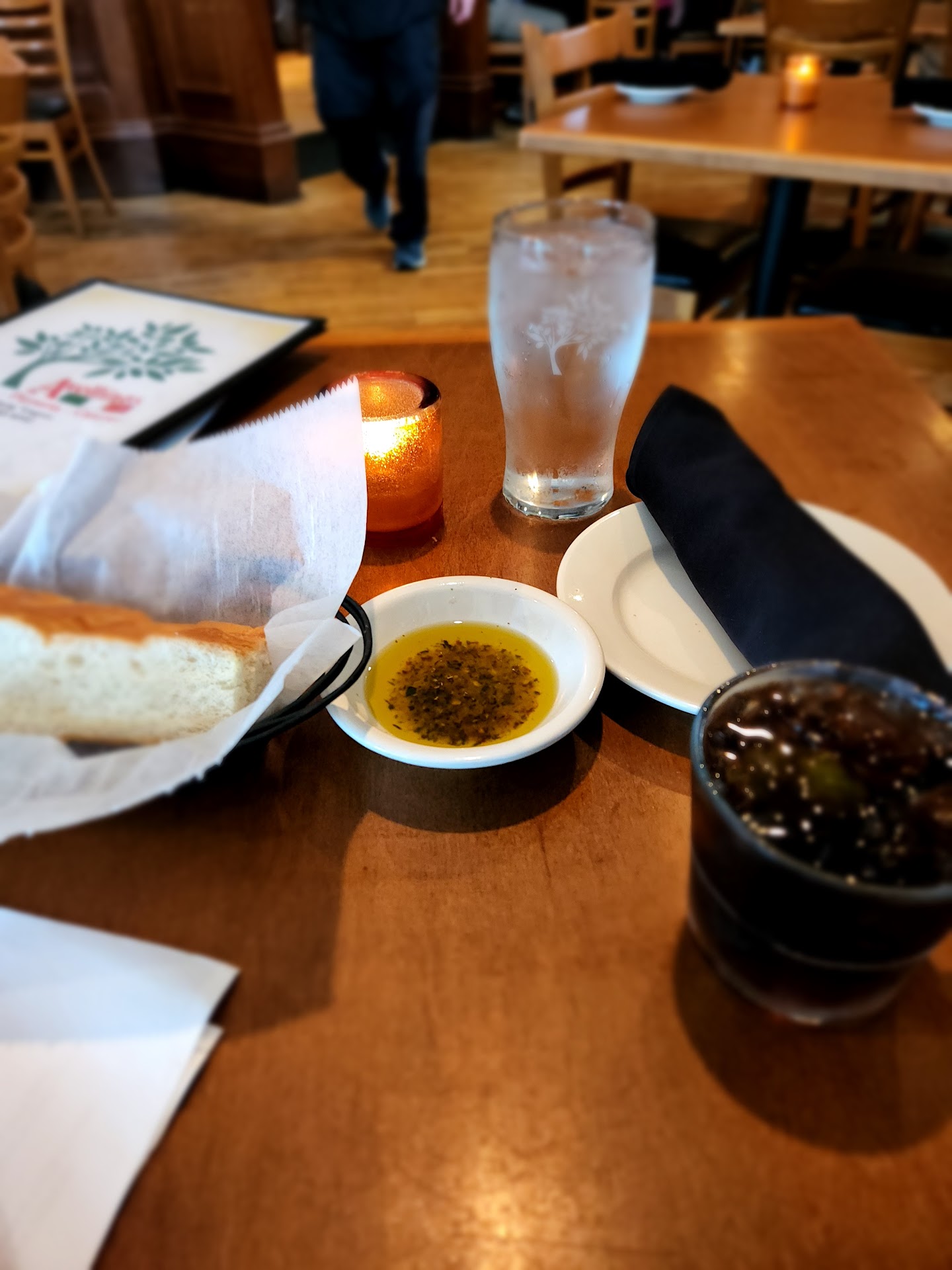 Read moreOur dining experience started out on a high. We had just finished hiking McAfee's and called to see if they could seat 4 of us if we were still dressed in our hiking clothes. We spoke to a lovely person on the phone who said sure. Their COVID safety measures were solid. Their bread and herbed olive oil we're AMAZING. I could've eaten it the whole time. I also ordered the seasonal italian cider which was really great. For an app, my bf and I ordered the mussels to split. Right when they reached the table, the smell threw me off. I had to stop eating my salad because of the smell. But I still wanted to give them a try because I really love mussels. No bueno. Something was really not right with them. We sent them back and they apologized and removed them from our bill, so that was nice of them. For dinner I ordered the bolognese. It was ok. Takeaway: the bread and salad were the best food of the meal.