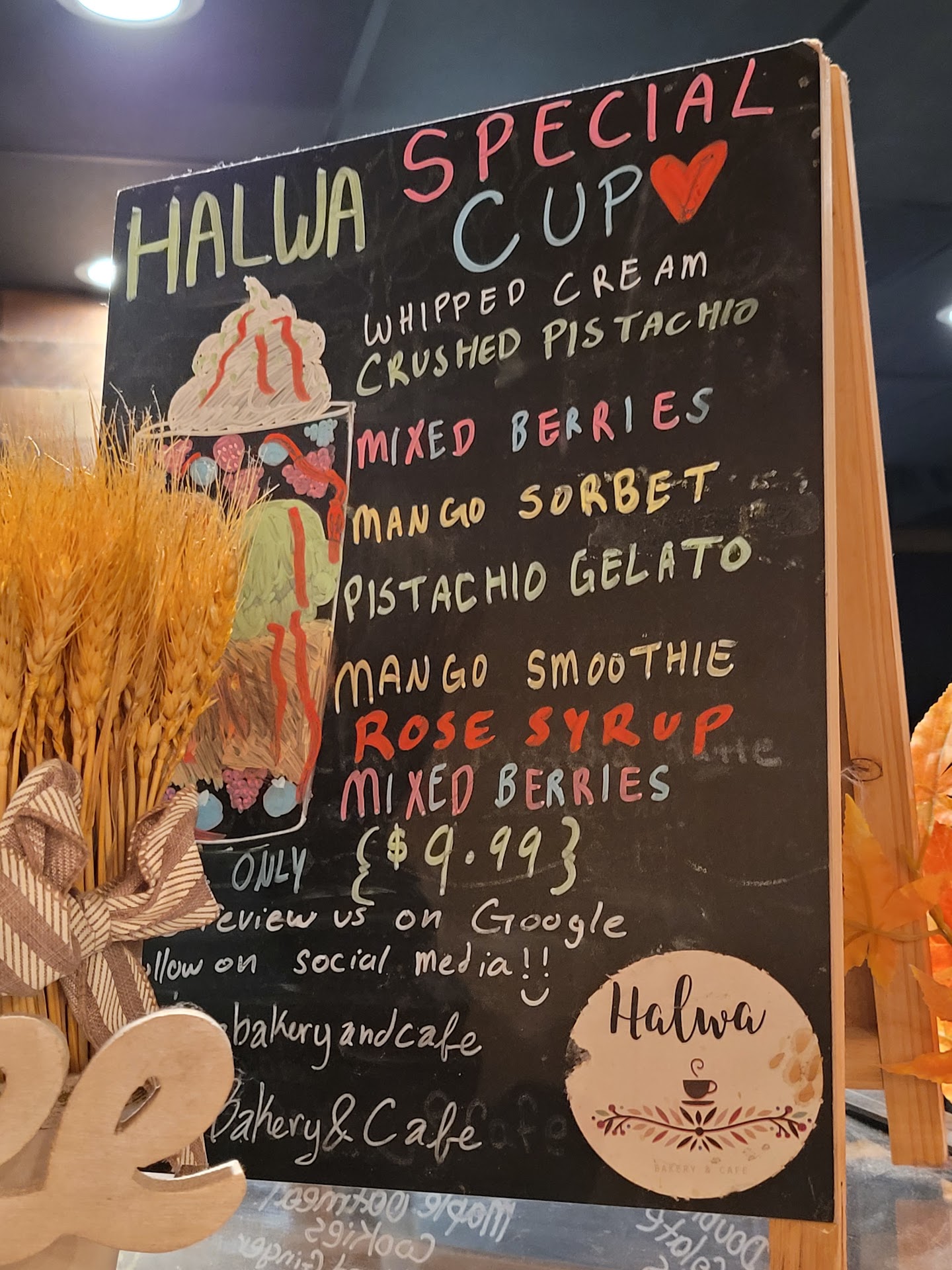 Coffee- truly high quality coffee with baristas that know what they are doing. They use beans from Counter Culture in NC which is a local, small batch roaster with an eye for detail in their flavor profile. Halwa offers all the expected espresso machine options as well as a huge list of things you won't find anywhere else like Arabian and Turkish style coffees. Try one of these!