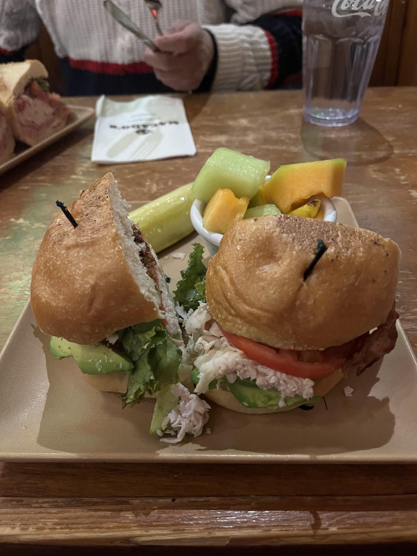 The place itself has a very nice theme of a sandwich shop. The restuarant gives off a nice, relaxing vibe that gives me a sense of warmth, comfort, and security. So I can say I not only come here to eat, I come here for the experience. Rolling stone papers, statues, and photographs all add to this sandwichy atmosphere. However with this certain theme, I feel this sense that the place is somewhat dirty. It just looks dirty maybe because of the wood material and how every ornament is scattered making neat minds go crazy. But the place is actually slightly messy. I see dirty dishes on the tables that haven't been cleaned up, I see lettuce and water on the table I have been just seated to, I see a wet floor sign because someone probably spilled water. It may sound like I'm whining but everything adds to an experience,...