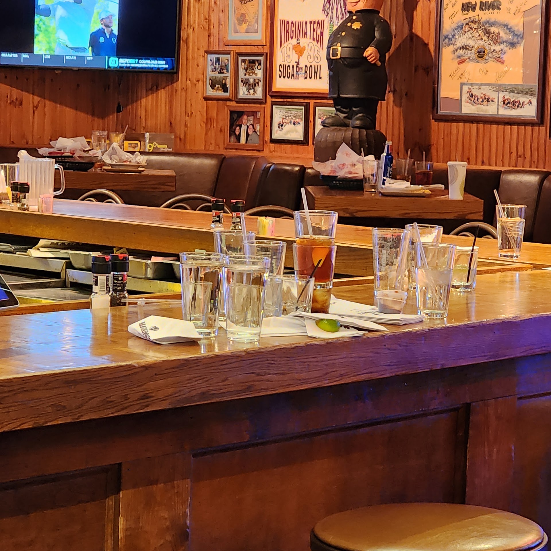 I took my dad out for his birthday tonight. For a busy night our waitress got our drink order pretty fast. When she returned with the drinks she begun taking our order. We had a 13 head table. I asked about how they grouped the wings since all the menu said was 40 something cent wings. Our waitress expressed her irritation while answering the question. I brushed it off since it was busy and she probably had answered that question several times tonight. After ordering food, I ordered a beer. I waited 35 min to get a beer at that time I was out of coke. She never asked if I wanted a refill. After I was out of beer, coke, and pretty much everyone else was out of their drinks, she walked past, looked at our table and kept walking. After I stopped her the second time she walked by, I asked for refills and another beer. 33 min later, I received my other beer. Everyone who ordered sandwiches got their food and the 4 others that ordered wings waited another 17 min. My wings were cold and some were frozen in the middle. Basically everything took forever, waitress was rude, unapologetic, slow, and loved to show how irritated she was with her job. Our experience sucked.