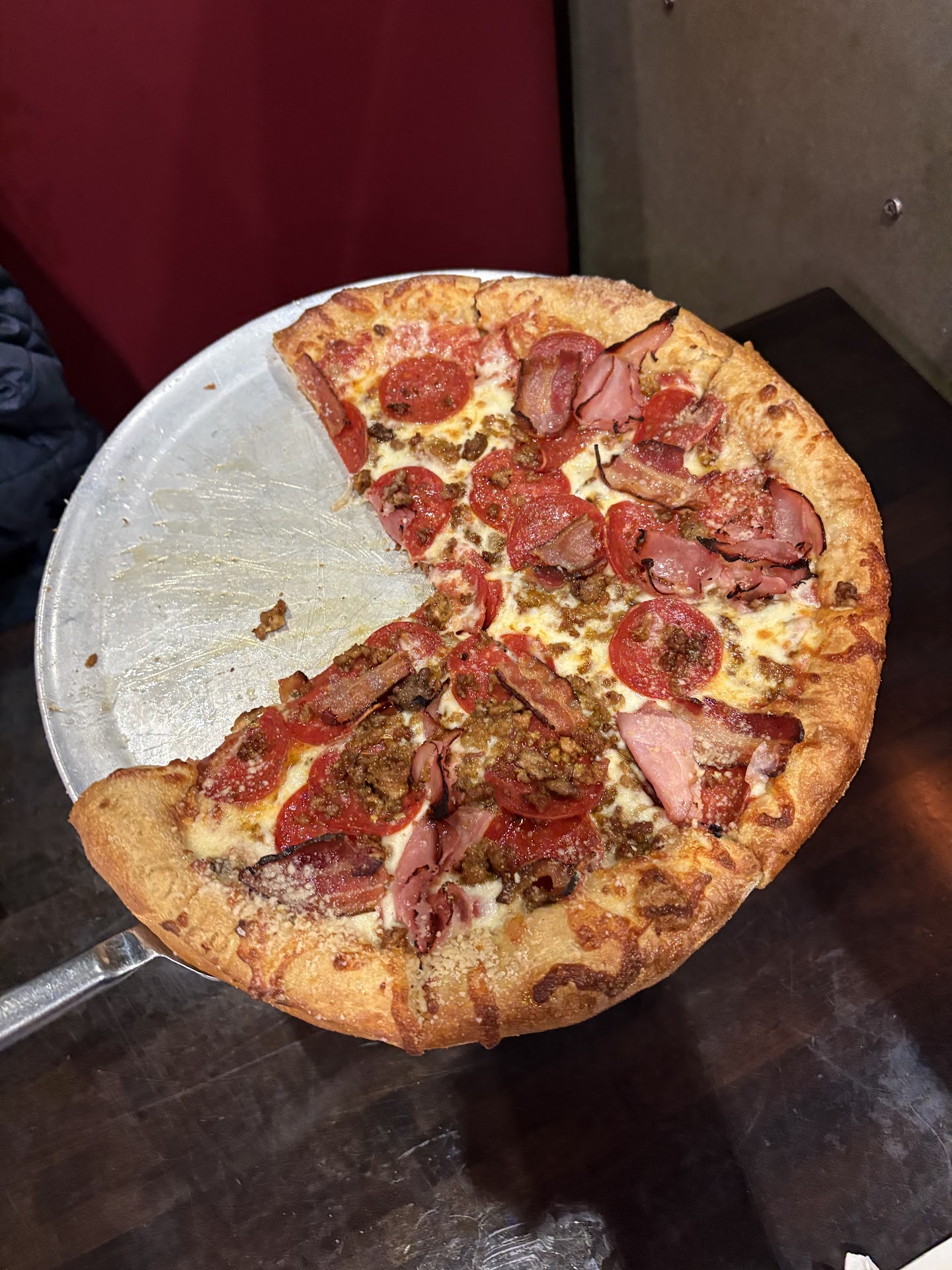 Read moreFirst of all, when we walked in we saw plenty of open tables and workers just in their phones, until five minutes went by where we finally got our server. She asked for our drinks, and she seems like a nice lady other than the teen girl stereotypical slang voice. When she got our drinks it only took about 15 minutes for drinks when she messed up a simple coca cola, but nevertheless, she fixed that quickly and about 10 minutes later asked for oir choice of food. I got a simple burger because I was simply not feeling for pizza that night. The menu said it was a normal burger but I would see for myself in a long 25-30 minutes. My families pizza was apparently really good, and I wish I could say the same. I got my burger and the pattie looked like a smash burger, but whatever it's just the taste that matters. Then when I took the toothpicks out, the whole burger started falling apart, I got maybe 1 or 2 bites until it turned to greasy mush, not being able to eat anymore. Then in th middle of my slight anger, a worker came in, just starting his shift is what I thought, and I was right. But he spoke very loud and would say some random things sometimes. He seemed like a nicer person and funny guy just at the absolutely wrong place, and obnoxious workers plus a hungry and frustrated teen boy, is not a good combination. I kept my cool and that was that. So overall the best part was leaving. Would...