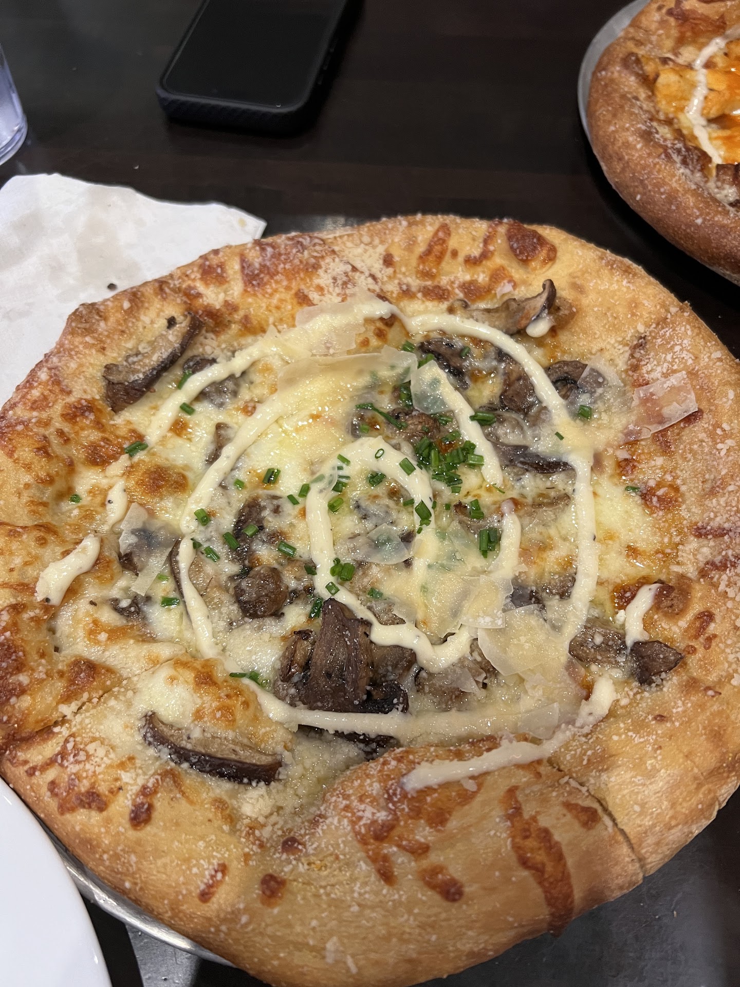 Moving on to the toppings, my favorite part by far was the mushrooms. These were just fantastic - cooked well, combined great with the olive oil base, and were really soft and juicy. The rest of the toppings weren't super noticeable, however, as I didn't taste the onions/chives that much
