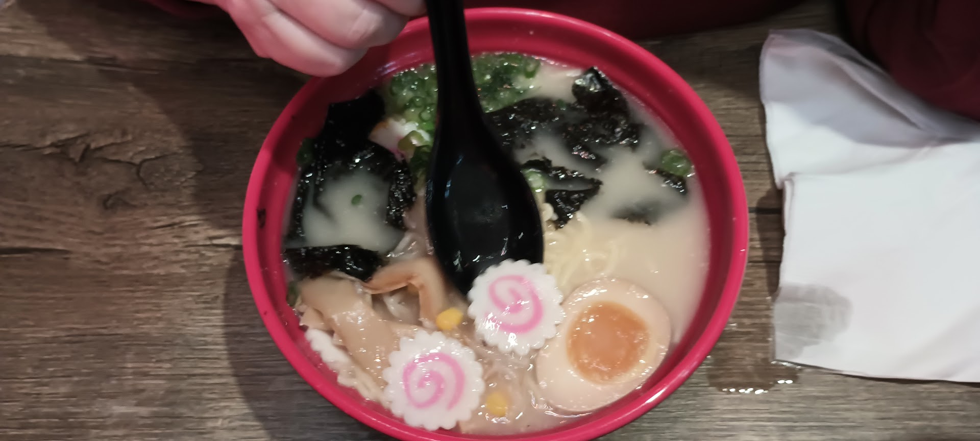 UPDATE: As promised.. a year later (third time here) I dropped in for their Tonkotsu Ramen $11 with beef bulgogi (+$4), which I had with spicy oil (+ $19, plus added a side of Kimchee for $4. (See photo) Other than the beef, It came with all the fixings (good broth, fish protein puck, soy egg, seaweed, etc.. and was very yummy. All said and done, before tip it came to $21. Kind of high for lunch.. feel like they nickel/dime you for what you get (spicy oil should be free).. but they are downtown Blacksburg (gotta pay crazy high Blacksburg rent). I might come back when craving ramen.. but would probably avoid bringing my family of...