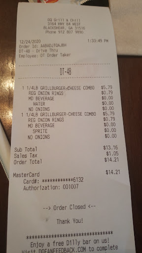 Read moreSo I'm sitting in the drive thru waiting for our food when I see this woman drop the gravy containers in the floor. Then she picks them up. Puts the lid back on one of them and wipes off the outside and puts them in the serving window where they are bagged and brought to me. I then told the woman I didn't know how I felt about being served gravy that was dropped in the floor. She said nothing and kept extending the bag to me. So I took the bag and drove around. I went inside and told the ladies there what happened. Still no apology. So I said I wanted new ones and one of the ladies took them and I watched her make and bring me new ones. The other lady just repeated back to me what I had just said in question format. So I thanked them for their trouble and left. Still no apology. So I forgive you Dairy Queen but I won't be back because I don't trust you anymore to handle my food in a sanitary manner and that's...