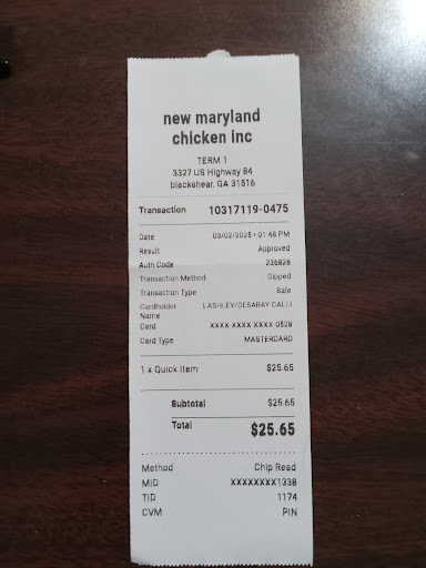 Read moreI decided to stop at Maryland Fried Chicken and Blackshear because one of my employees told me that they have some of the best popcorn shrimp baskets so I was going to go and try it for lunch I've never been there before and I'm working so I didn't have time to stop and eat in so I went through the drive-thru needless to say that I part was behind a car that sat there at that window for over half an hour finally I got tired drove around the car and left and wound up getting a sandwich...