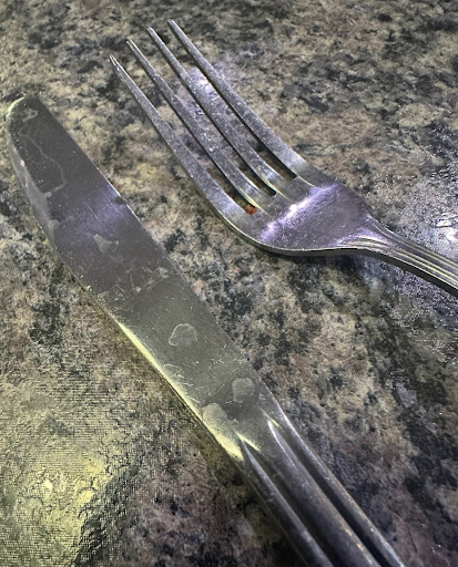 I sat down and noticed as I opened the utensils, the silverware was filthy, spotted, and actually had particles of something between the fork tines. The server came after a few minutes and took my beverage order. It seemed like she was in a rush tho. When she returned I ordered my food.