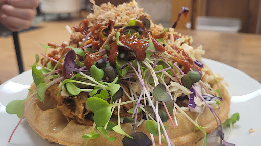 Read moreWaffles without gluten??? Yes! Savory AND sweet waffles??? Yes! Extensive boba/bubble tea men? Yes! Cozy yet beautiful atmosphere? Defs! Friendly and fabulous staff? The BEST! Delicious food for the whole family? Yep! I can't say enough about this place, it's just a dream come true to finally get a spot like this in our quaint little town. I was taken out by my BF for a birthday brunch and I fell in love ❤️. The food was delightful, the service was phenomenal and the atmosphere was chill, relaxing and the decor is awesome. I tried the Waffle with cream, fresh blueberries, strawberries, peaches, almond bits and whipped cream. Bestie had the popcorn chicken with Asian slaw savory waffle and we shared. I ordered a Thai tea with brown sugar Boba and she had a latte that was ginormous and beautiful to look at. The kids were very happy with the blended bubble teas and they loved the popping boba. Everything was off the chain. Mellow reggae music was being played, and I could've hung out in there for hours. Can't recommend this place...
