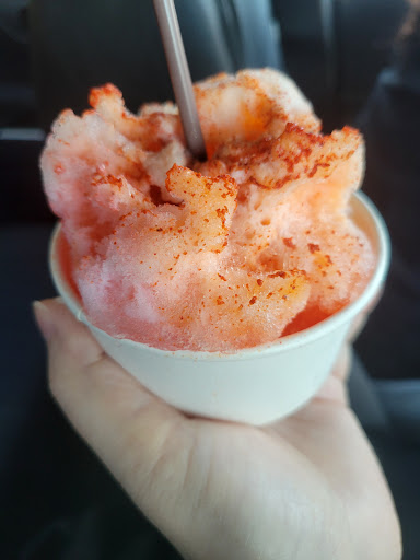 Pictured: Shave ice with snow cap, ice cream, li hing powder, POG, Li Hing Gummy Bear, Hawaiian Dream flavors and the Taro Waffle with fruits.