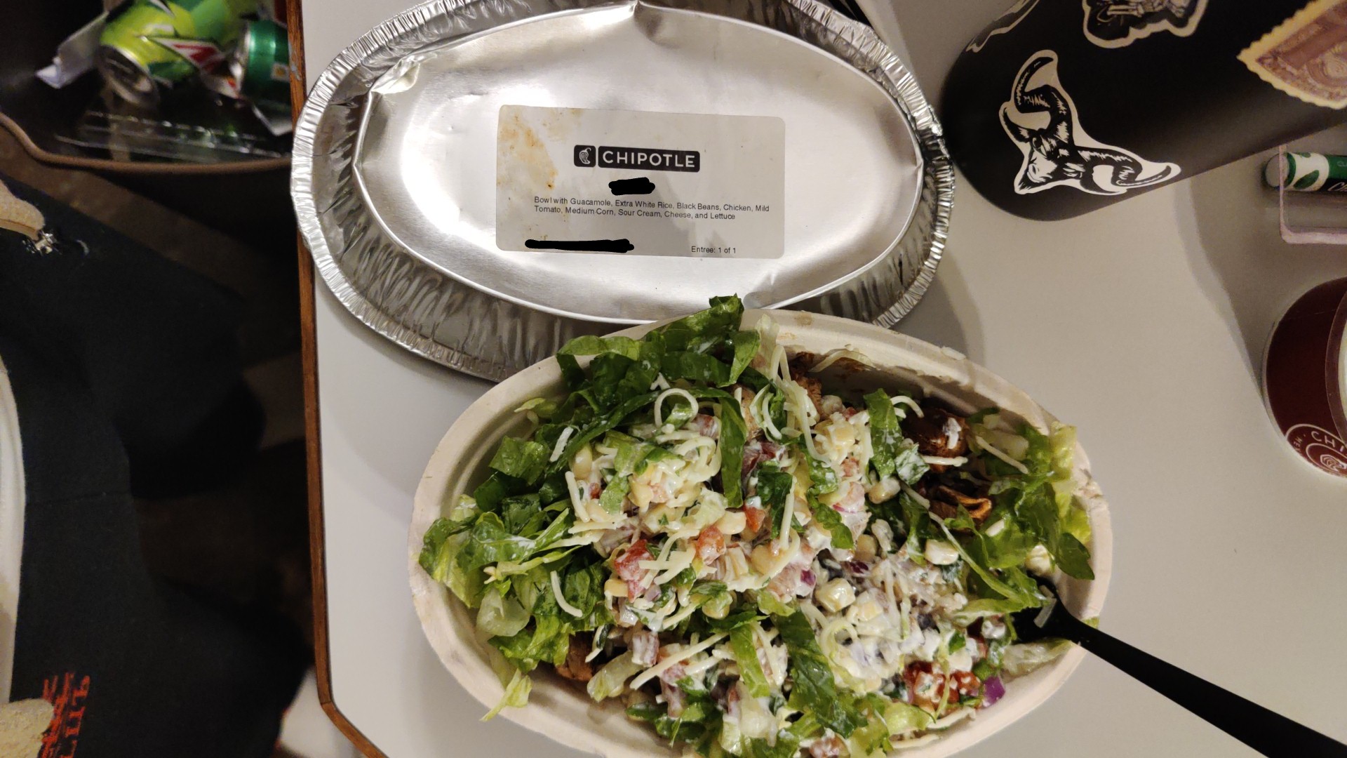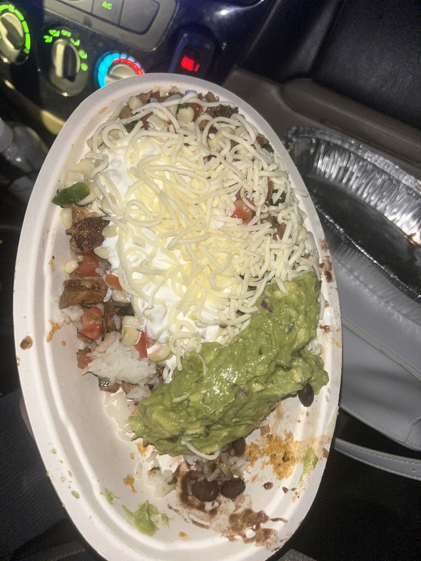 At the end, my bowl was half empty! It was completely flavorless! I remember when the carnitas had such amazing taste, not anymore. I tasted bean juice and watered down crema (sour cream). Crema is typically more runny than sour cream. However, it appeared to have water poured into it.