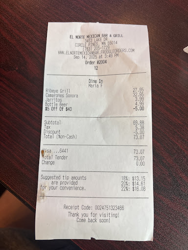 Read moreWe really wanted to like this place....but, it was freezing inside, its impossible to have a conversation as it's so loud (think Chipotle but must worse), the server was nice, but obviously too busy as the service was so slow. We sat for 10 minutes without anyone coming to check on us after we were seated. The food looked beautiful and stops there -- I'm very sad to say. My dinner came with rice and beans, but I don't what those beans were...bean soup maybe? Never seen it like that before - watery. The verde sauce was thick like a cream. I would say the best part was the chips and salsa, but who can mess that up? Oh, and the guac was very good, gotta give them props for that. We had enchiladas and burritos, whole family agreed we won't be back. All Circle Pines has is mexican places, maybe they need to branch out because there is better down...