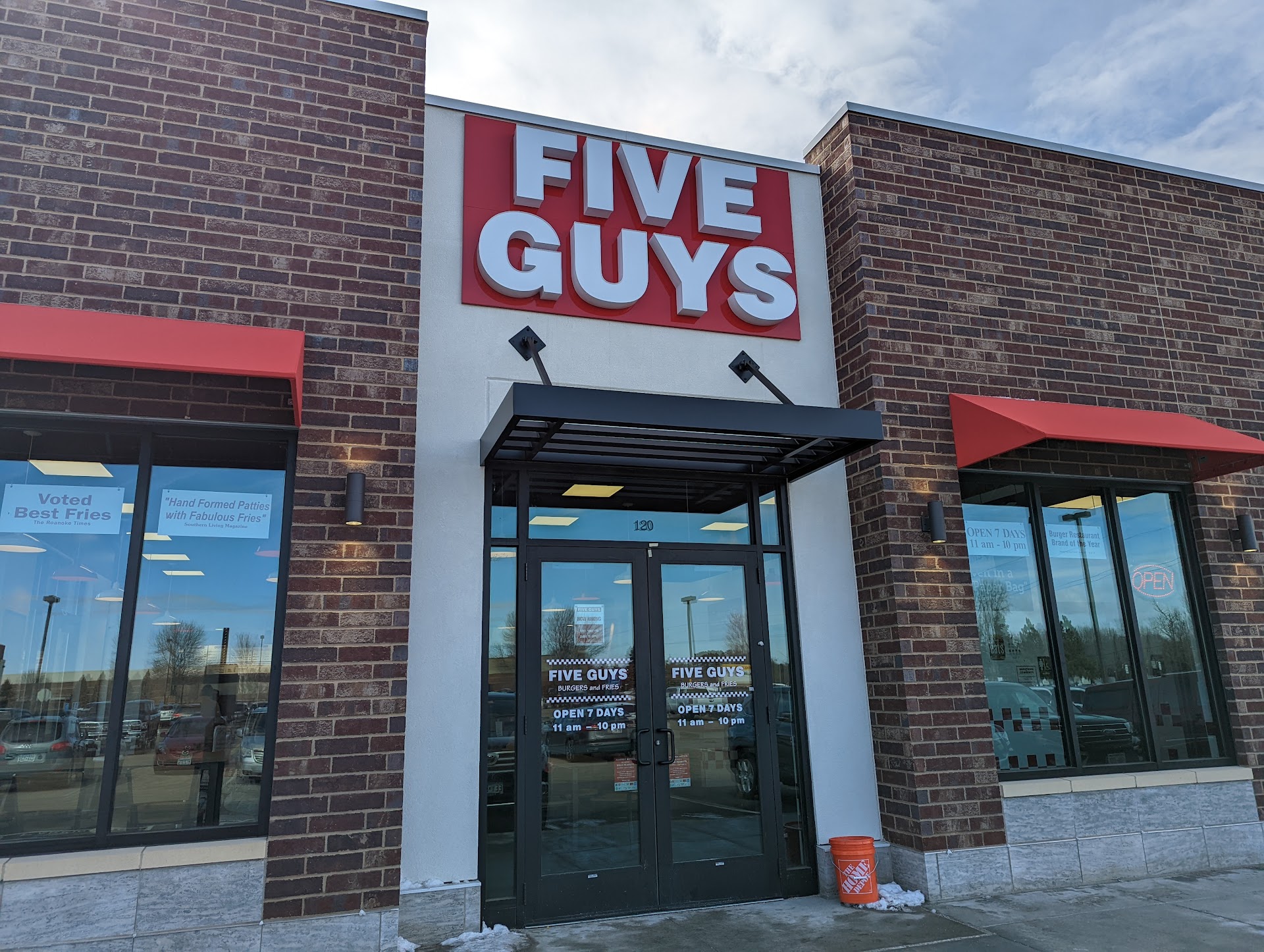 The food was just ok. Ive been to five guys a lot times at different locations but this was just underwhelming for a bunch of reasons. They pulled out my fries at least 5 minutes before my food was given to me, and they were cold and flimsy. The burgers were undercooked on both parties and ran a lot of blood and grease because of that. Glad i set on weather tech mats because they left a big puddle in the 4 to 5 minute drive home. Just a bit of a disappointment after that what is probably 150 above...