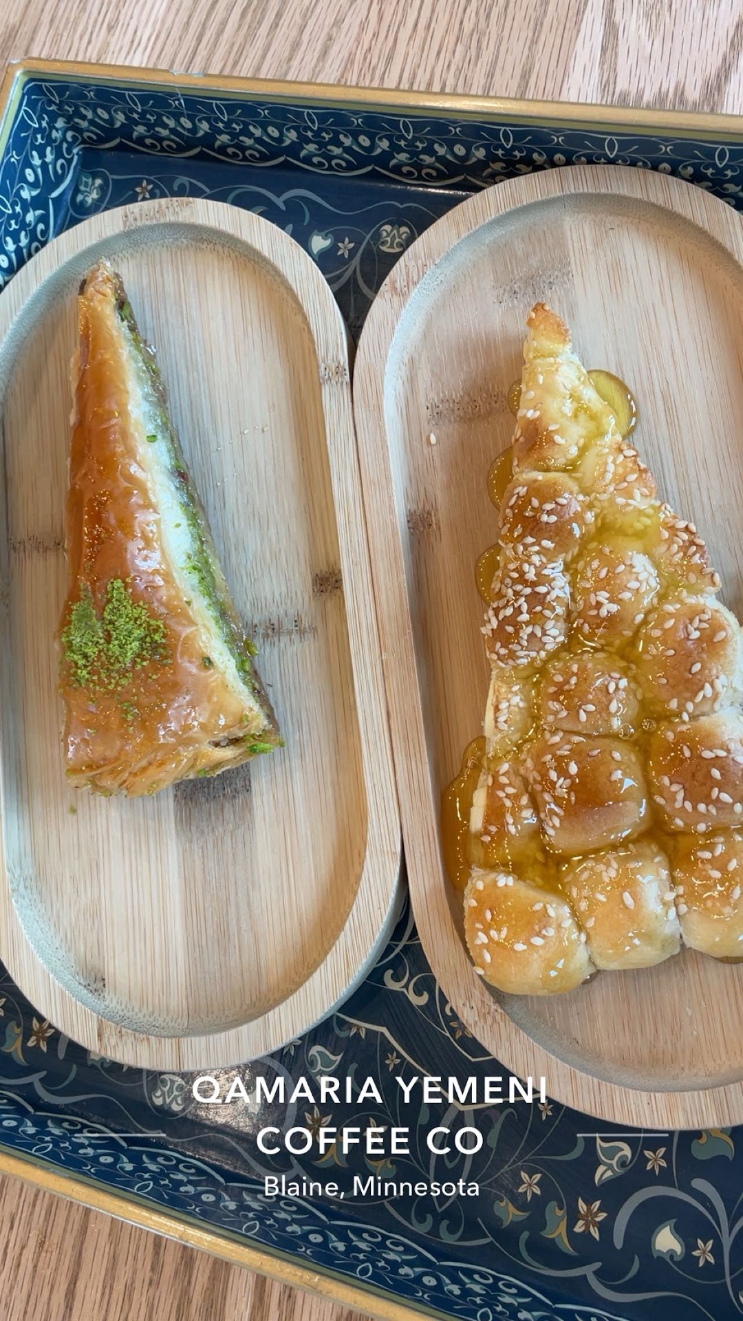 Read moreToday was my first time having Yemeni coffee, and I absolutely enjoyed it. I arrived around 1030am, and there were only three other guests in the cafe. You order at the counter and are provided a buzzer so you know when your order is ready. The cafe is beautifully decorated with benches, sofas, and tables with chairs. I had a spinach pie for $6. I personally did not enjoy the flavor of the spinach, but the pastry was soft and tasty. The isphan croissant was a win, very delicious with a flaky crust $6. The qamaria latte with almond milk; it's their signature espresso, steamed milk, cardamom & cinnamon was flavorful $6.50. It was served in a to go cup, although I dined in.