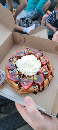 LOVE THE CONCEPT the atmosphere and the late night treat!! We need more! I was happy to be able to leave a event and say "I'm craving sweets" google had dairy Queen but all closed! This gem was open late people I'm there playing some games, good music and bright welcoming design. Super cute place. My husband got cereal ice cream and I got the build your own waffle. My only "nag" is I wanted more options to put on my waffle, like butterscotch , white chocolate, speinkles etc. Only options were really marshmallow, caramel, and Oreo. I had Oreo and whip cream it was so yummy and fresh and perfect for a late night treat! I wish we had this place were I am from. Staff was nice, friendly welcoming tables were clean, there's tables out in front also. They have cute merch for sale, cups, shirts, milk. I hope they expand and stay in business for a long time. Adding some walnuts with honey glazed pecans and cone crumble on top of a...