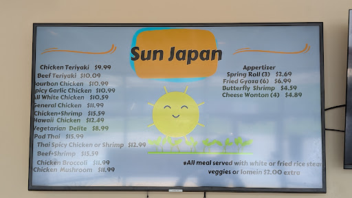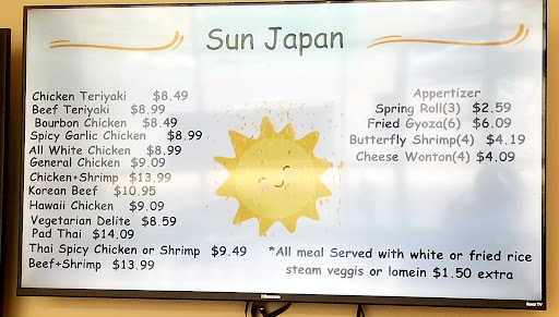 Read moreDifficult to find due to there being no big sign out front. The food is awesome and you get a lot. I ordered the spicy garlic chicken and was very satisfied. A great pre or post workout mass gaining meal! I did text in a sign in the photo section..... maybe they should have one painted on to avoid the code rules. Paint can't blow off of a building. Anyway the Sun always Shines at JAPAN SUN....find this diamond...