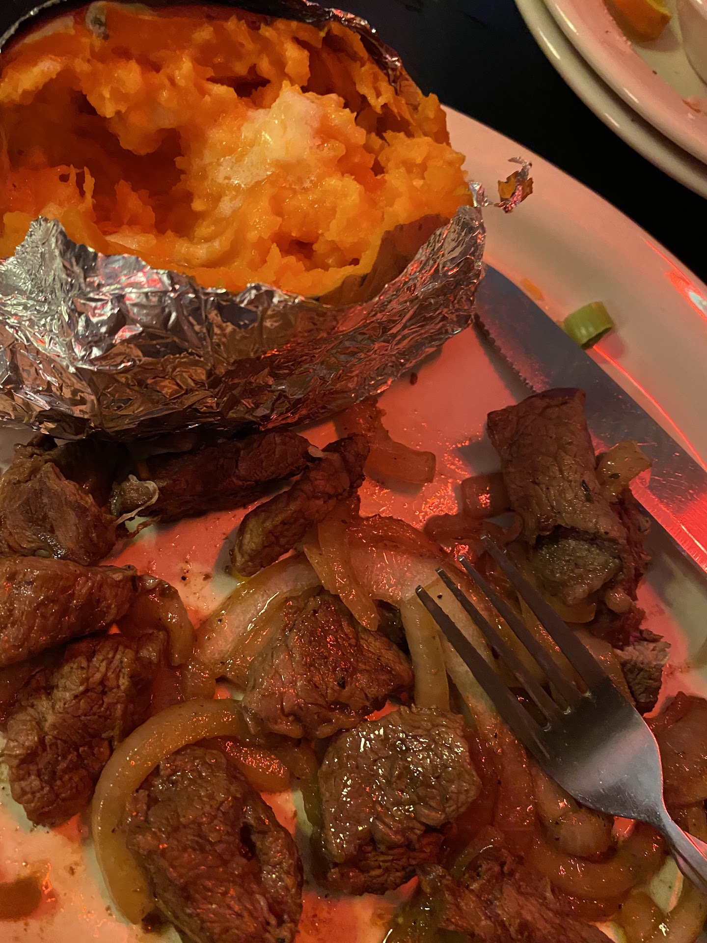 Read moreStaff very friendly.....the wait for the food was a while, and by a while I mean, they brought out my wife's appetizer, she ate it all, they refilled our drinks, then they brought out her salad, which she picked through, they filled my drink again after I drank it to 1/4 empty.....then they brought out my wifes main dish. I had the ribeye steak medium rare which does not take long to cook at all....so my wife was served her entire meal, her appetizer, and refilled her drink once before I got my steak. The texture of my steak was outstanding, cooked med. rare to perfection, however it had enough salt on it that it could have given me a coronary. I mean WOW.....I let my wife taste a piece to see if I was just being picky....when she chewed it she looked like a 2 year old who just tried a lemon slice for the first time.....Normally I would have sent a steak like that back but after waiting soooo long for it I just bucked up and ate it. This visit was at 10pm at night as well....But I want to close this by saying again...the staff was very polite, and friendly. The wait for my food, bringing all of my wifes meal to her before mine was ready so we could eat together, and the saltiness of my steak is why I gave this place...