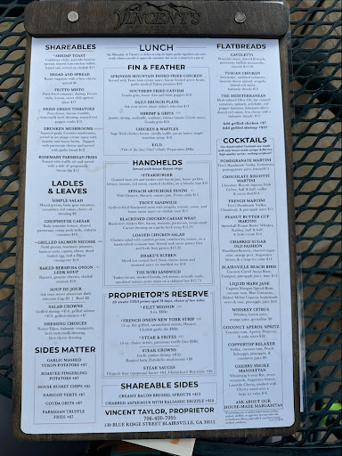 Read moreDined here for the first time and seriously regretted our choice in finding it. Upon visiting the area for the weekend, we wanted to take our friends out for a nice relaxing meal. We were seated immediately, and our waiter asked for drink choices. 1 coke $2.95, 1 sweet tea @ $2.95, 1 water and 1 tiny glass of Ameratto sour for $9. 20 minutes later, not so much as a bread stick. Asked about bread and received 2 pieces of stale garlic bread for 4 @ $5. Apps ordered, 1 small serving of crab rice without crab and flavorless, more like plain white rice, uneaten. $5. 1 bowl of watered down onion soup $7. 1 small cup soup du jour lol $5. 1 pimento grit cake with shrimp app, a whopping $16. The main course couldn't get much worse, right? Surprise.. yes, it can. 2 seafood absolute ordered @ $68! Wouldn't have minded price if I actually received a $34 meal. Served in a tasteless white sauce over pasta, clams and muscles used were the tiniest we've ever had the misfortune of seeing or ordering. Clams and muscles inside were the size of a peanut at best. Dish boasted a whole 2 scallops & 5 med. shrimp to boot, served with.. you guessed it, another piece of stale garlic bread that was unchewable. I refused to eat it, so my husband ate the seafood off the pasta due to still being hungry. The waiter clearly could see I wasn't eating yet made no comments. He obviously must have agreed that it was a joke. 1 very cheap waygu meatloaf that looked plain and dry $18. 1 Panko fried chicken $23 for small cutlet!! TAX & TIP TOTAL OF $210! We most definitely will NEVER return here or recommend it to anyone. Assumed food was good because of the packed parking lot. Lot was full because of the bar and loud music. This is definitely a mountain stop for drinking. The interior is old and outdated. The noise level of tunes and chatter is loud. The food is absolutely ridiculous and overpriced for what you'll receive. Plan on bringing a full belly if you're looking at portions. This is a low-level menu with unwarranted Al La Carte over pricing to even try ordering anything decent. Unfortunately, nothing we ordered met with any expectations. I highly recommend looking to Google and Yelp for other suggestions in the area or find someone who definitely knows of a better place to spend your money if you're expecting much better. This is clearly a case of overpriced restaurant gouging with...