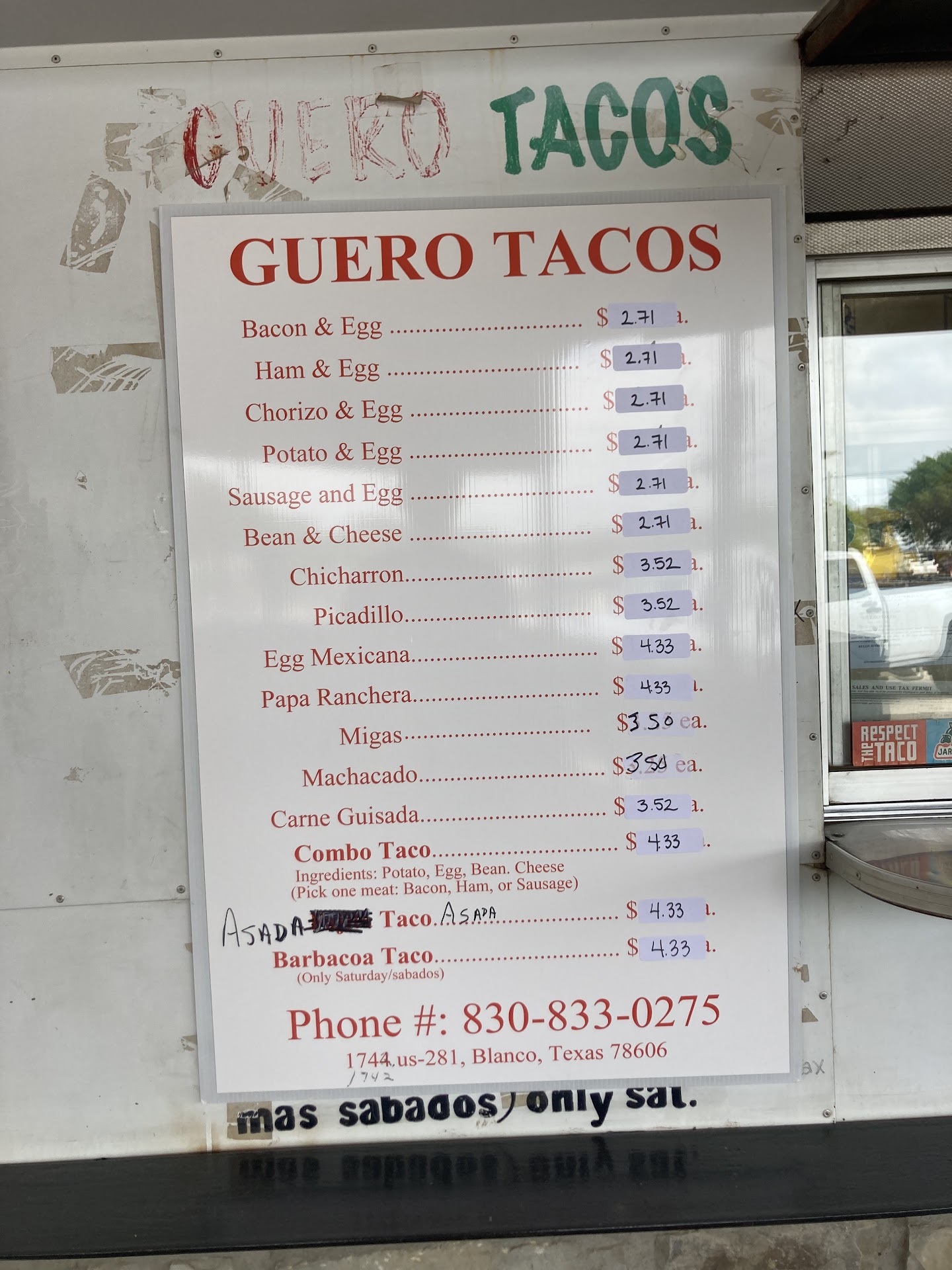 Read moreHorrible, Im from the valley so I didn’t expect Blanco Texas to have great tacos but these were worse than bad. They asked me if I want “salsa” on my papa ranchera and that isn’t salsa it’s pico. They potatoes had no salt no seasoning tasted like they had been soaking in water for days. Pretty bad also ordered chicharron and chorizo and egg both equally as bad. Had to throw away the food. What a waste and $12...