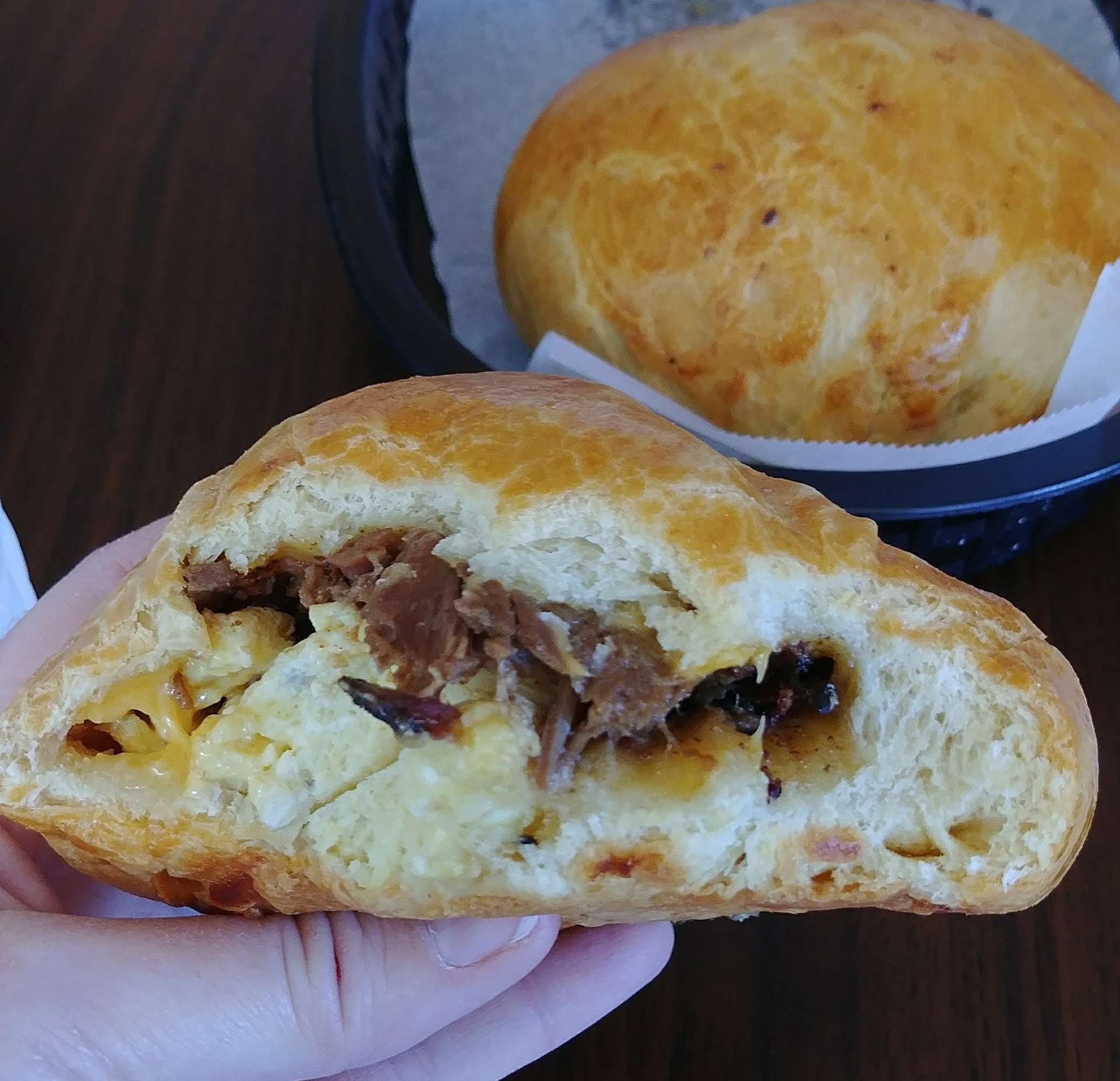From the first bite, itās clear this kolache is something special. The brisket is smoky and tender, the eggs are fluffy and satisfying, and the melted cheese brings it all together in a rich, savory blend. Wrapped in their signature soft dough, itās the perfect balance of flavors and textures ā hearty, comforting, and absolutely delicious.