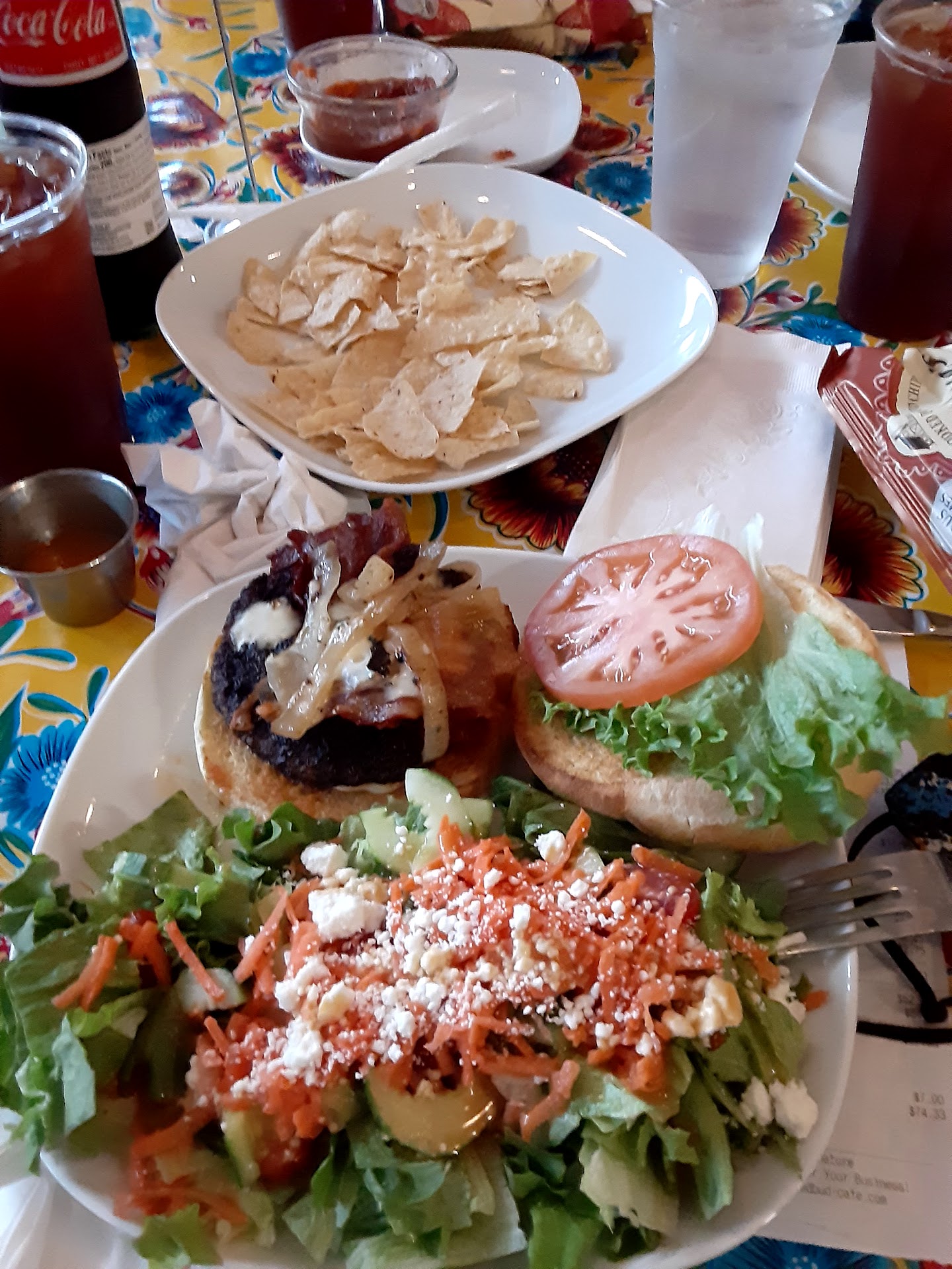 We were a party of four adults and 2 children, age 4 years and 16 months. I went inside and asked for a menu so that I could go back to the covered porch and get everyoneâs order. The request for a paper menu was a big problem as their system is a chalkboard menu. When you place the order they give you a table. After an extensive search, a paper menu was found and I secured a table. My husband went inside with our orders and paid. They gave him 3 glasses of water and an ice tea. Fortunately, they helped him bring the drinks to our table.