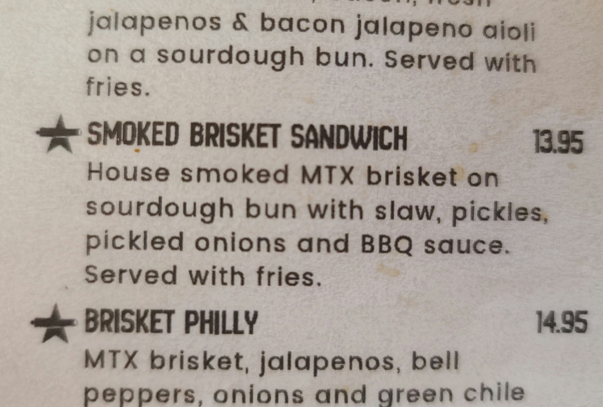 Read moreI'm visiting Blanco and decided to give this place a try. The food was excellent, and the beer selection was good. I had the smoked brisket sandwich and tater tots. The brisket was tender, and the barbecue was just tangy enough for my liking. The tater tots were freshly made and not soggy like some restaurants. The beers I chose were very different from each other. The best of the 4 by far was a surprise to me after reading the description. El Hefe had a full flavor, good fizz, and a nice smooth finish. Who knew banana and clove would taste great in a beer!? I even left with a growler to take home! My second was the Canon Stout. The flavor was bold, with good chocolate overtones. I know my husband would like it. Next up was Ranger Rye. I don't normally care for a piney taste, and that came through on my tastebuds. The other two of the IPA & Hoppy category were unavailable, or I would have tried one of those. Last on the list of four was a lighter golden lager called The Texian. If that's what you enjoy, then you may like this one. I prefer a fuller bodied beer with unique flavors. The restaurant area was comfortable, a bit rustic, and they had great music playing. The waitstaff was exceptionally friendly and attentive, and there was a steady stream of people coming in for the bar or to pick up takeout orders. I would definitely recommend trying this place out! I know...