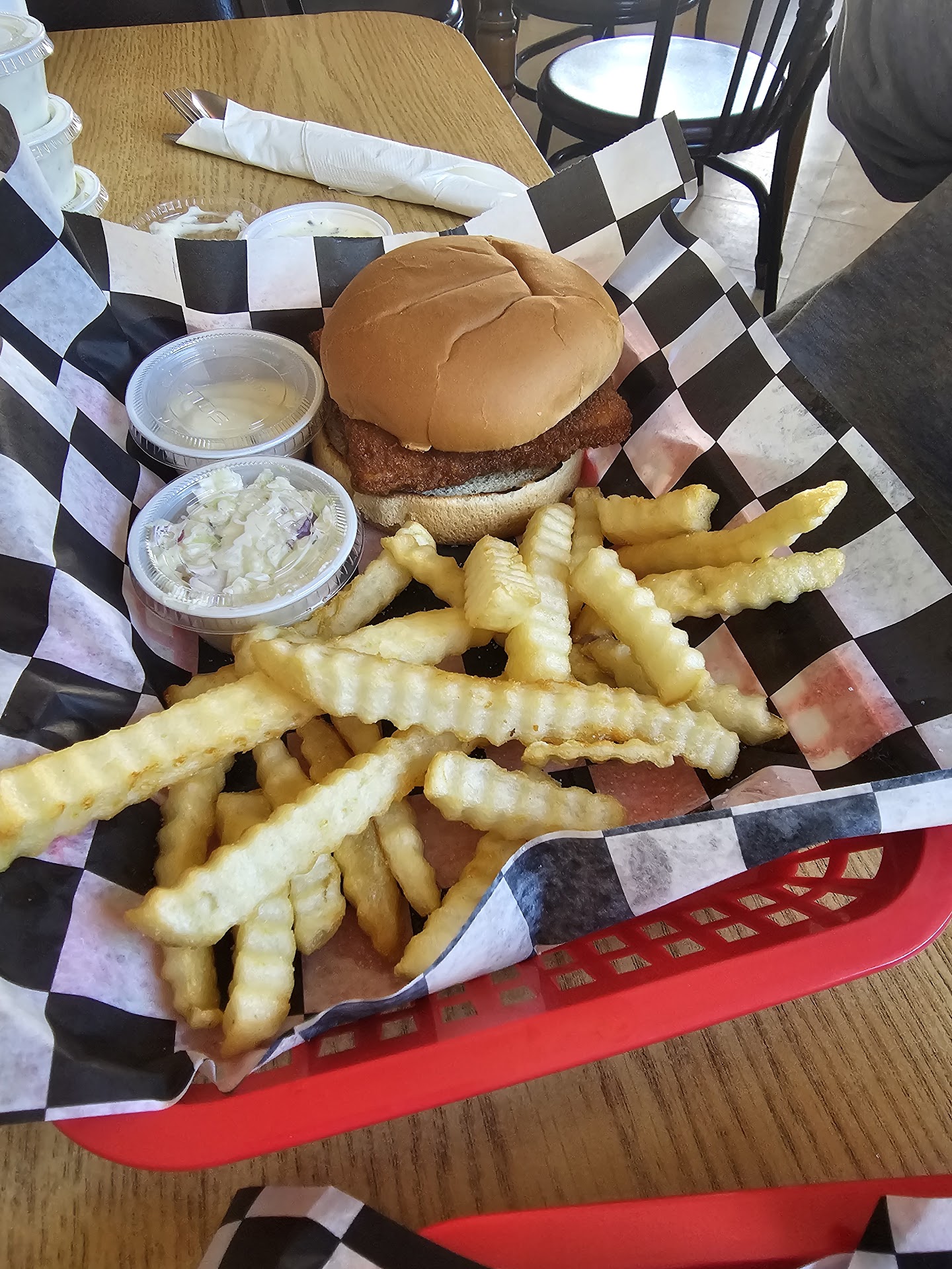 We were really looking forward to it since friend reported fantastic people own it. Menu looks great, but many items were unavailable. Kids in shop were sweet and apologetic however, pilot was off on grill and took much longer than expected, even though the items that came out cold (hash browns were nasty cold breaded potato chunks). I'm told not to eat beef, pork or lamb so ordered a chicken wrap...Buffalo- but after more than 30 minutes of waiting, we were told that wasn't available.. so swapped to a grilled wrap and asked for honey mustard. As food was eventually being brought, my daughters was cold, it didn't even seem warmed in a microwave. Mine eventually made it to the table, but I couldn't even eat a 1/4 of it before feeling discomfort. We weren't upset with being there way longer than expected because we were enjoying our table conversation but must have heard dozens of apologies, and still when we needed soda refills, he mentioned that's an upcharge... (what? You've got to be kidding?!) No one felt comfortable in complaining even though we had to still ask for thr honey mustard, one of our friends needed to request the veggies for her cheeseburger.. nothing appeared even warm, no smell from grilling or anything. Didn't hear sizzling from the open kitchen. Since I have MS, my body reacts I guess a bit more to improper food. So my daughter wasn't surprised that I had to pull over on our drive home and vomit whatever I had taken in. When we got home, I unwrapped the wrap and looked at the chicken, it didn't look fully cooked, but had deep brown like from a cold grill that had beef gristle left behind and scraped into it, all the signs of cross contamination suggesting to me that had I tried to ingest anymore, it would have ended with me not just vomiting but having another er trip for anaphylaxis- which truly terrifies my daughter. As it is all I can think of is trying to get typed because thry can't fix what thry don't know is broke and going to sleep .. I have no more energy and the chicken honestly looked too old to even give to my dogs. Can't do it again so best of luck, since again, I was really looking forward...