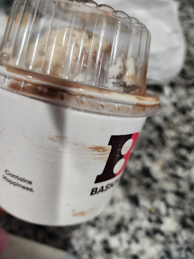 I've been a Baskin Robbins customer since childhood. I've never had as rude of service as I've had this evening. I ordered a double scoop, like I've ordered my entire life, and they gave 2 half scoops. I politely asked for 2 full scoops. The guy argued and said "that is 2 scoops." I said it's not even at the top of the cup. (Mind you, there was a big 3 inch gap of plain air from the top of the cup to the top of the clear lid. As expensive as Ice cream is, I rightfully wanted my 2 FULL SCOOPS.) Reluctantly, he took it back. Came back with an attitude, and handed me this. I guess he hates his job??? Like how can you serve Ice cream and donuts (two of the happiest foods on...