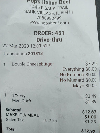 The Italian Beef was supposed to have mozzarella cheese, sweet and hot peppers along with being dipped. There was a shred of cheese, the sandwich was dry, and there was no giardiniera. The amount of meet was about half of what it was in the past, so even understanding that we are in hard times, this was unacceptable.