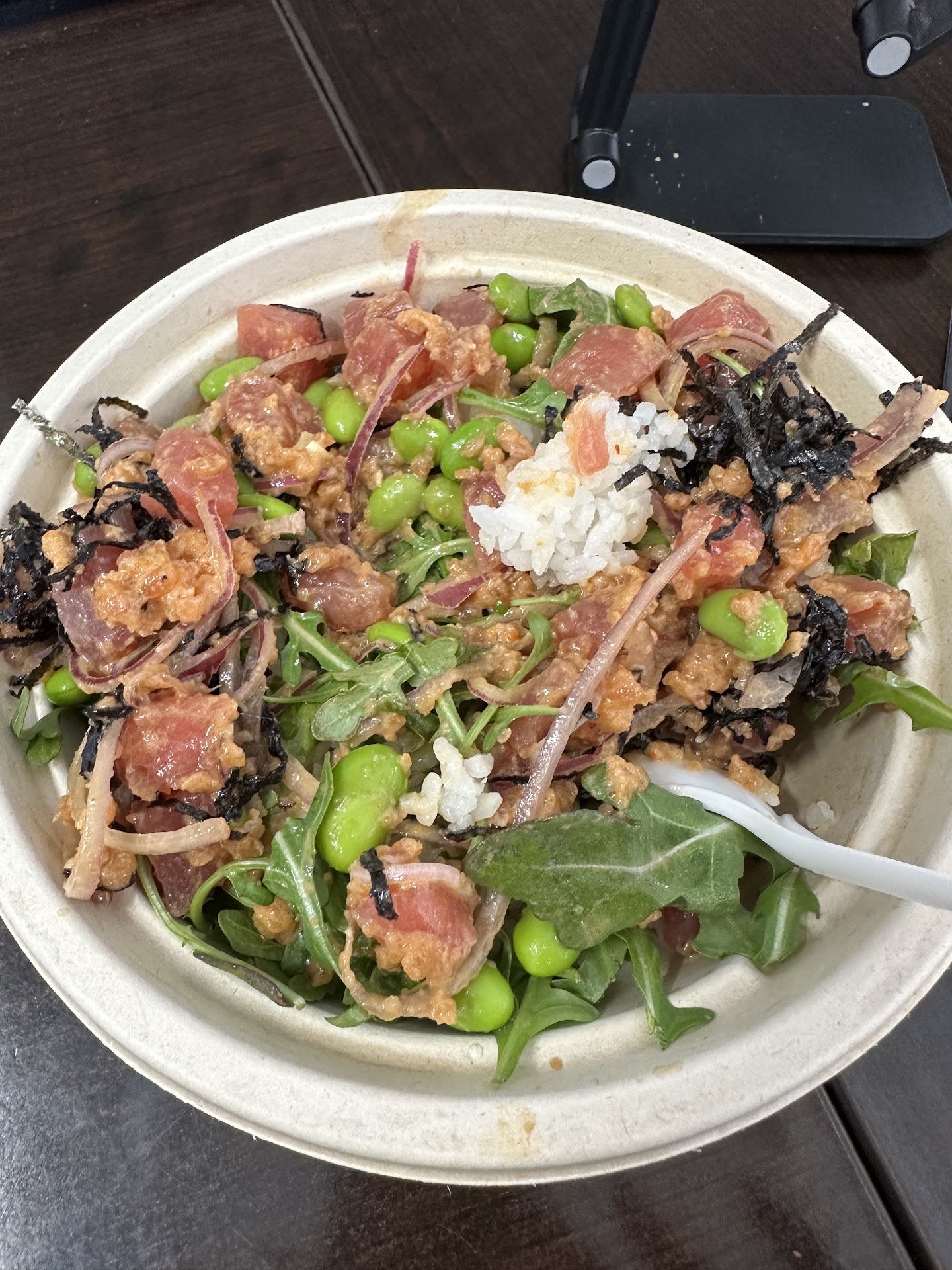 As a WW person, the Poke Bowl choose your own ingredients choice allows me to stick to the program while staying WELL within my points. i did order a large because I wanted 4 kinds of protein not 2. Very delicious and I am quite full. It is truly design it yourself as they allowed me the ultimate flexibility to put the rice (I chose brown) and sauce (selected umami soy sauce) on the side. Always makes me extra happy when restaurants comply with your special requests to the T to allow you to follow program meticulously!