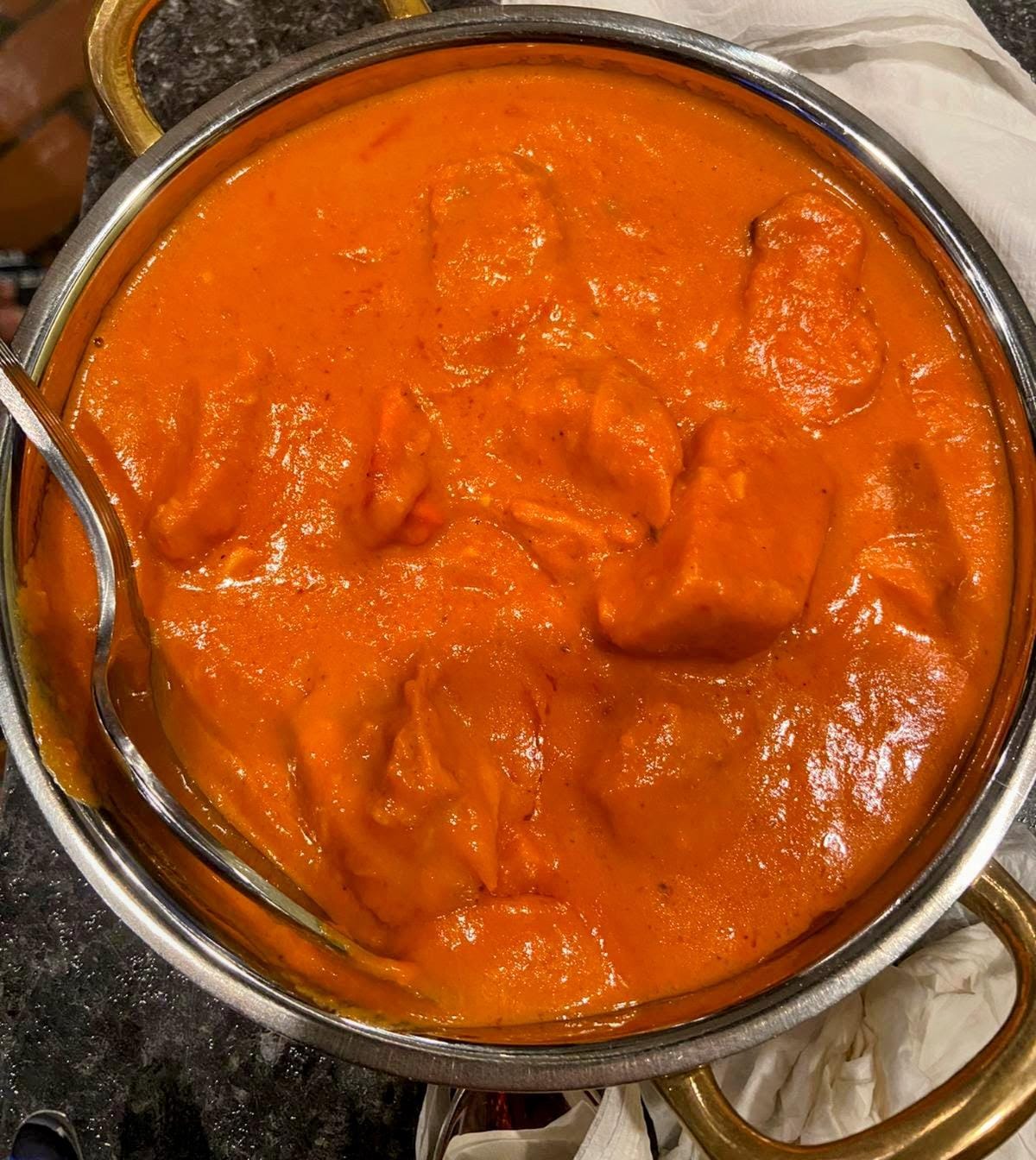The second meal we ordered here was a repeat of our first (see below) Veggie Koorma and Butter Chicken - the flavors were ok, but the quality of the chicken was low, really tough and dry. The naan was hard in places, as if it had been reheated - in general, the main dishes and naan all seemed like they were reheated or of a particularly low quality. The mango lassi had a funk to it... The portions of the main dish were fairly small (but not unusual compared to other Indian places). The takeout packaging wasn't too great. On that meal alone I might have given them 2 or 3 stars.
